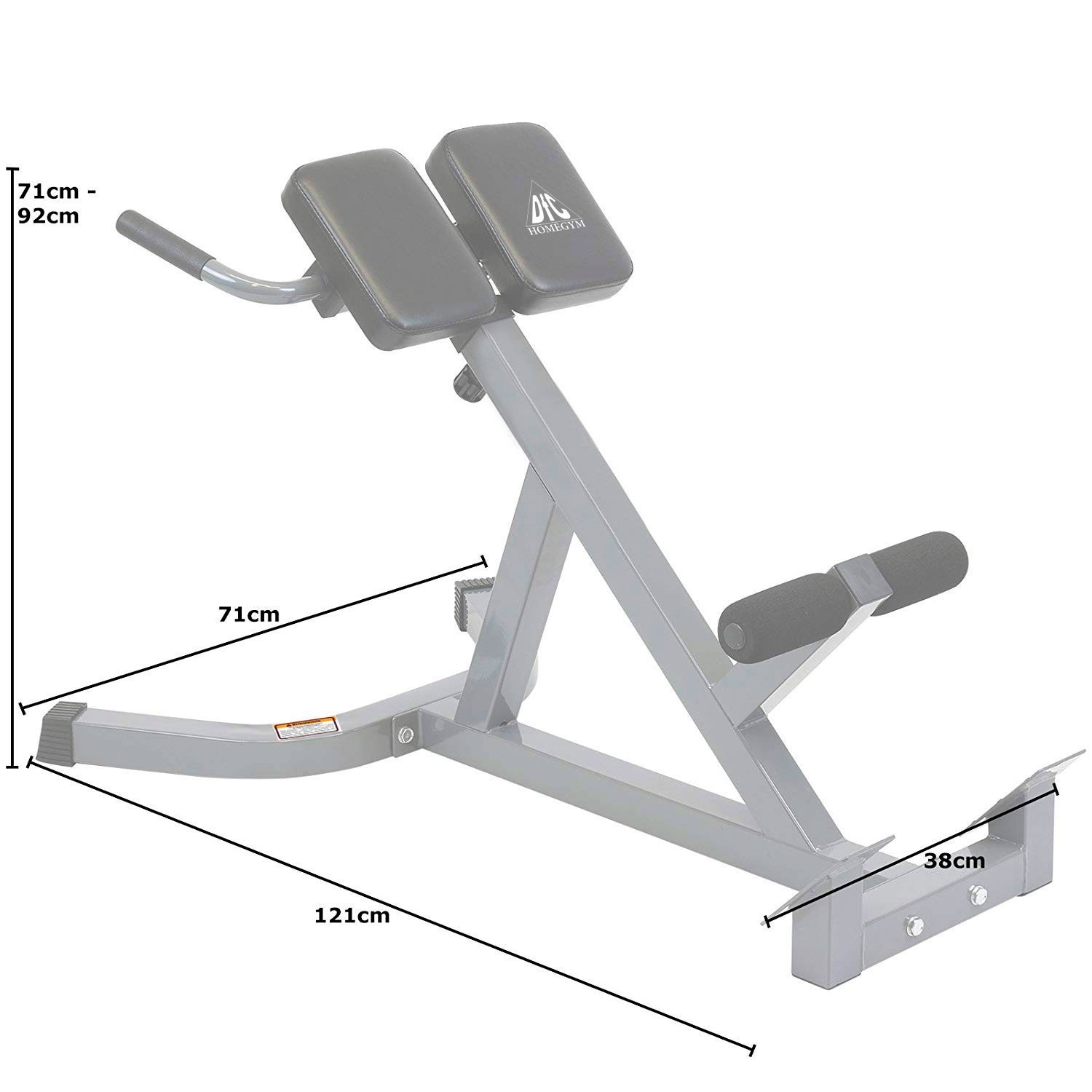 Гиперэкстензия позволяет комфортно и безопасно тренировать мышцы живота и нижней части спины, а так же внутренние и наружные мышцы бедра. Угол наклона 45° для эффективного укрепления мышц. Регулируемая высота подушки тренажера позволяет подобрать оптимальное положение для тренировки людям разного роста. Две подушки из прочного кожзаменителя имеют 4 положения регулировки. Рама тренажера изготовлена из стального профиля. Размер: 50х50х1,5 мм. Многослойная порошковая окраска тренажера надолго продлит срок его использования. Подставка под каждую ногу для упора во время занятия. Удобные ручки для поддержки во время занятий. Нескользящие резиновые ножки для устойчивого положения на полу. Вес пользователя до 120 кг Размер в рабочем виде 71 х 125 х 71 - 92 см Размер 1 подушки 23 х 16,5 х 5 см Общий размер подушки 23 х 38 х 5 см Размер упаковки 74 х 56,5 х 18 см Объем упаковки 0,075 м³ Вес нетто 14,5 кг Вес брутто 16,5 кг Бренд DFC Страна производства Китай Гарантия 12 месяцев Инструкция скачать Дополнительные фото товара.