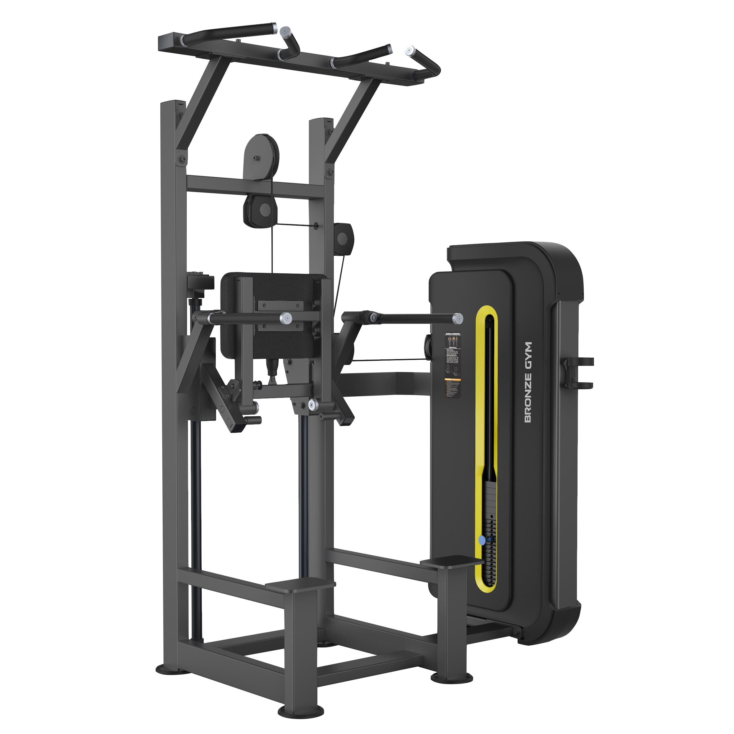 Профессиональные силовые тренажеры от немецкого бренда BRONZE GYM - это отличное дополнение для любого современного клуба, как с точки зрения функционала, так и качества продукции. Отличные биомеханические свойства соответствуют высоким стандартам тренировочного процесса. Даже при высочайших нагрузках, пользователя ожидает полная безопасность. На силовой серии BRONZE GYM установлены самые надежные узлы и компоненты, а также самый качественный пластик. Материалы, использованные на грузоблочном станке, экологически чистые, и, по большей части, могут использоваться повторно. BRONZE GYM BW-3009 - это профессиональный тренажер коммерческого класса. Благодаря модели гравитрон, пользователь сможет проработать мышцы спины, груди, трицепса и плеч. Рама BW-3009 с внушительными размерами 100*50 толщиной 2.5 мм и порошковой окраской в два слоя, выражает силу с первого взгляда. Прорезиненные, нескользящие рукоятки оборудования обеспечивают надежное сцепление рук пользователя во время занятий, что избавит от риска получения травм. Стальной трос в ПВХ оболочке общим диаметром 6 мм отвечает за подъем грузов. Между прочим, это один из самых высоких показателей в классе. Весовые плиты изготовлены из прочной легированной стали. Общий вес стека составляет 68 кг. Для простоты использования, все фиксаторы на тренажере выполнены в ярких цветах.* Это очень важная деталь, особенно для слабовидящих пользователей. Установленное на модели эргономичное сиденье из искусственной кожи гарантирует повышенный комфорт пользователя на протяжении всех подходов при выполнении упражнения. Мягкость обеспечивают подушки с полиуретановым наполнителем. В качестве дополнения BRONZE GYM BW-3009 оснащен держателем для бутылочки с водой и полотенца. *Все спецификации могут быть изменены производителем без уведомления. Продукт и цвет продукта могут отличаться от изображений на сайте.