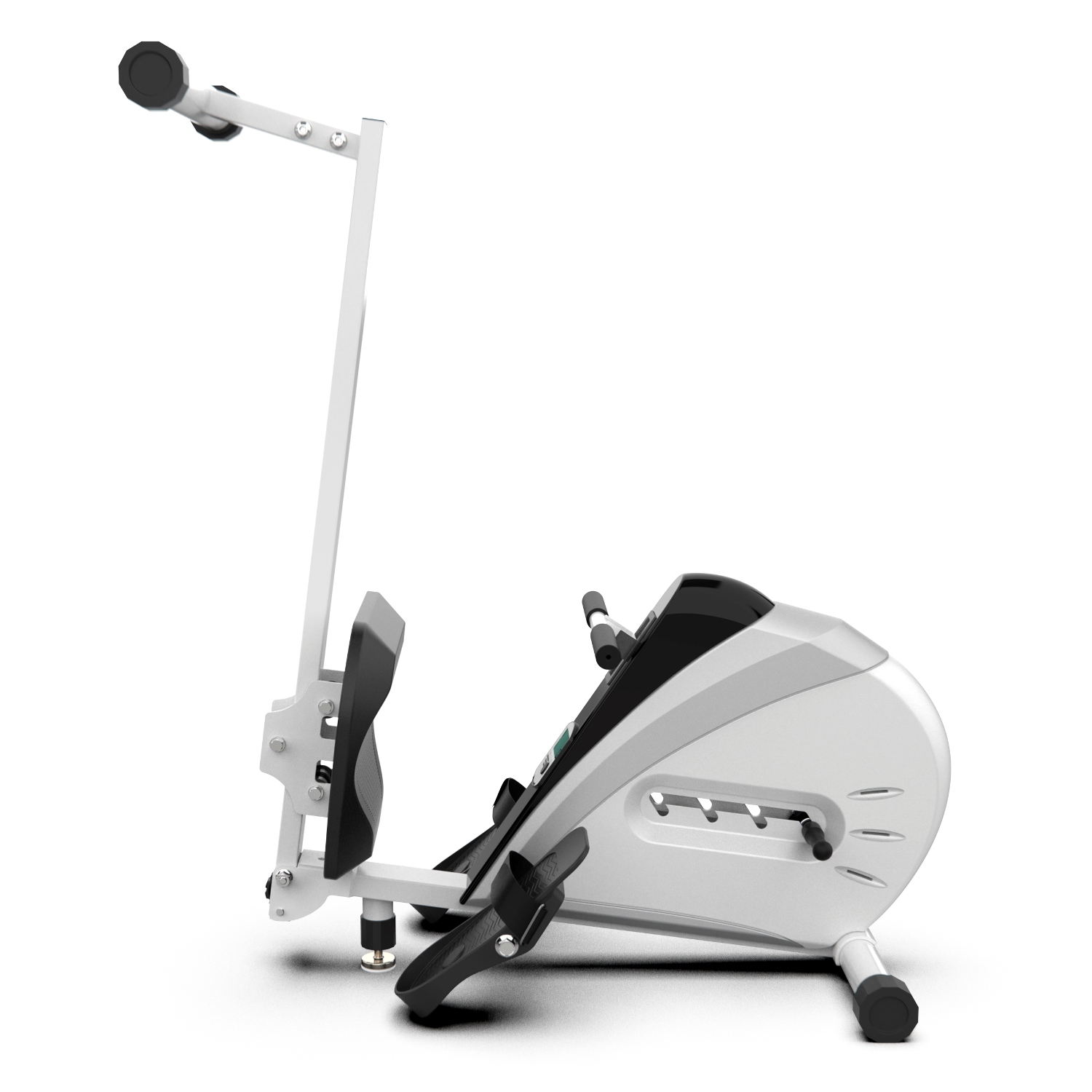 Гребной тренажёр R7104 складной, благодаря чему не займёт много места в комнате. Эргономичное сиденье регулируется по высоте в 4-х положениях, а на педалях предусмотрены ремешки с липучками. Эти особенности позволят отрегулировать тренажёр исходя из потребностей пользователя.