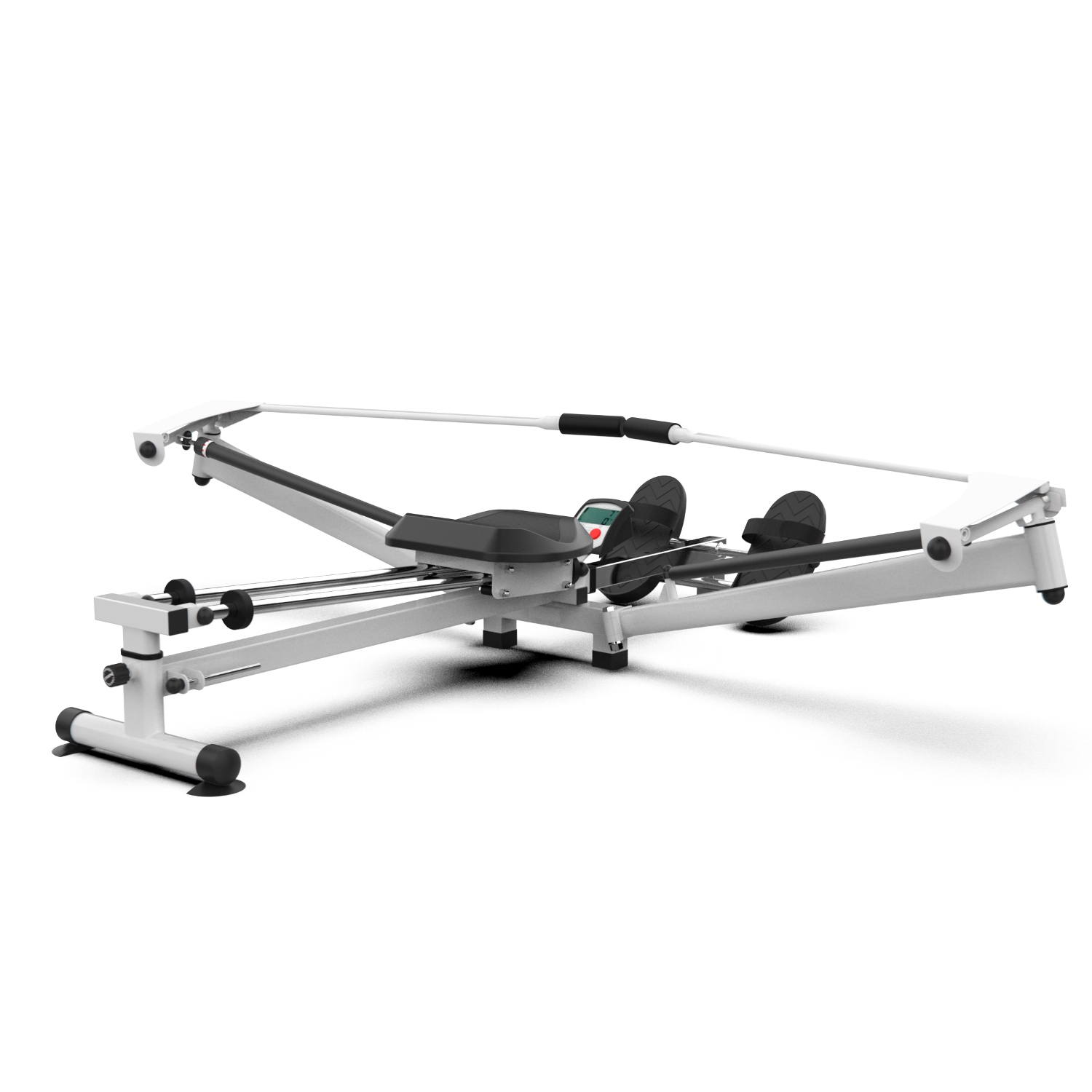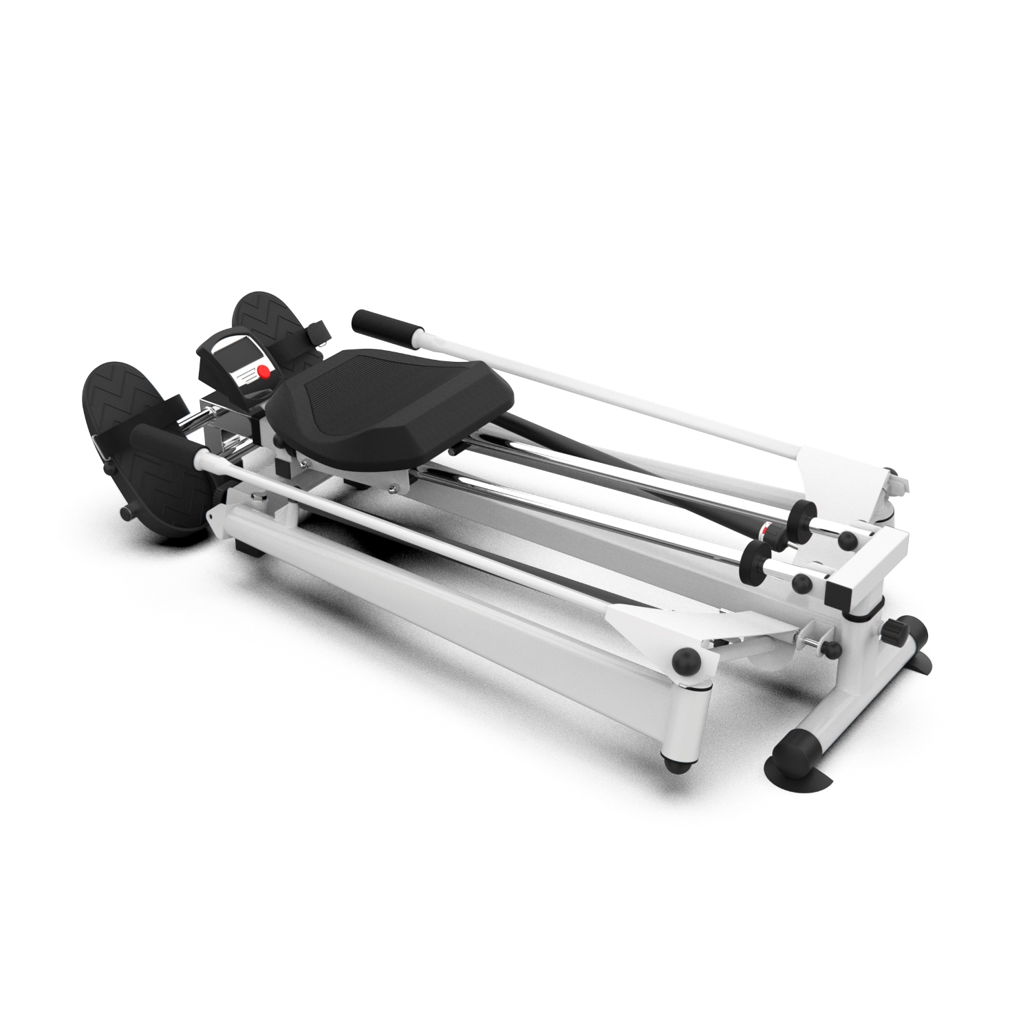 Гребной тренажёр R71061 складной, благодаря чему не займёт много места в комнате. Эргономичное сиденье регулируется по высоте в 4-х положениях, а на педалях предусмотрены ремешки с липучками. Рукоятки тренажёра имеют диапазон вращения 360°. Эти особенности позволят отрегулировать тренажёр исходя из потребностей пользователя.