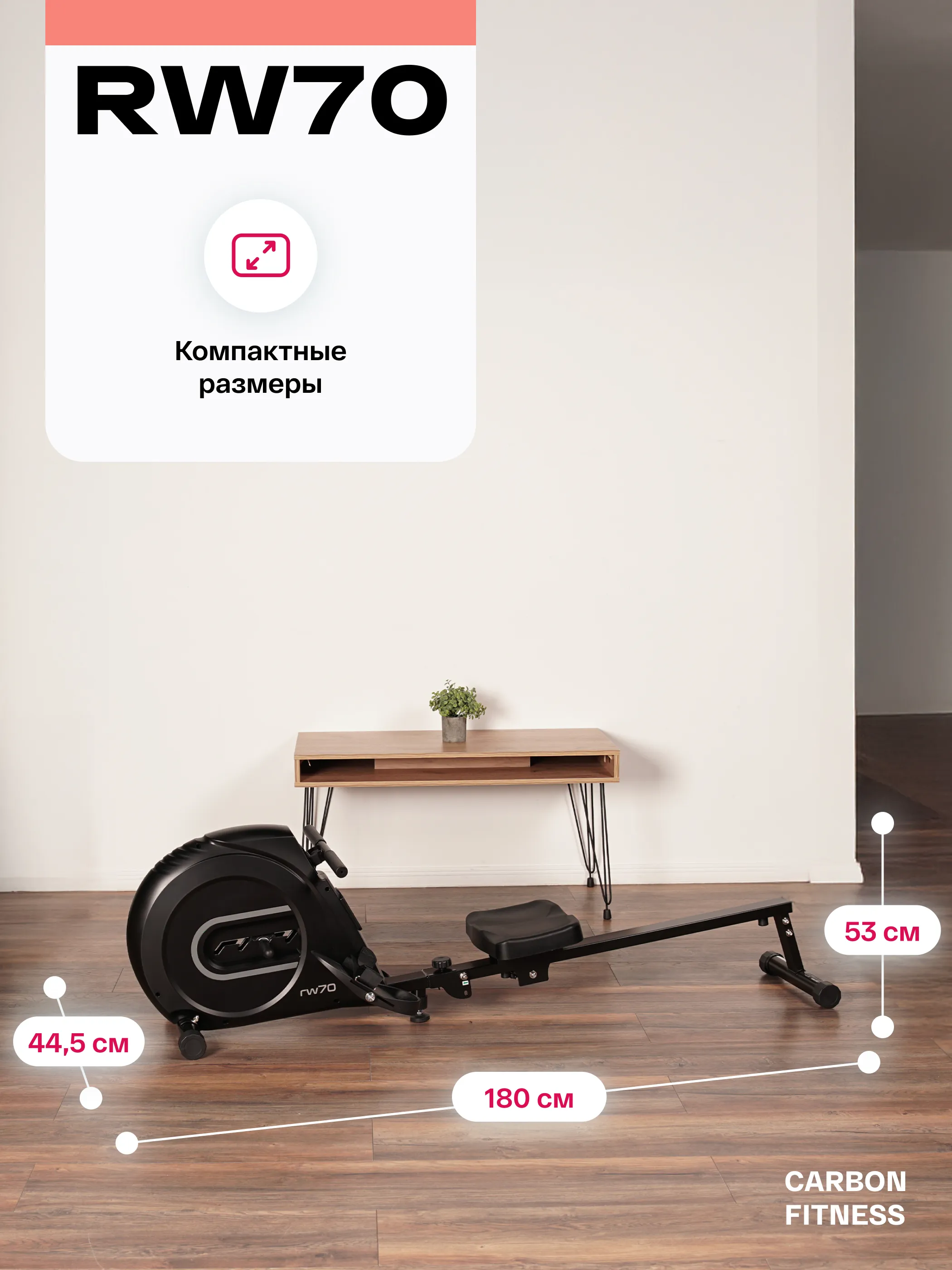 Гребной тренажер CARBON FITNESS RW70 — это идеальный выбор для домашних тренировок, который подходит как для новичков, так и для опытных любителей фитнеса. Он предлагает функциональные характеристики, обеспечивающие высокую эффективность занятий и комфорт во время тренировок. Компактный и стильный, этот тренажер станет отличным дополнением к вашему домашнему фитнес-уголку. Тренажер оснащен LCD-консолью с возможностью отображения основных показателей: времени, дистанции, калорий и счетчика гребков. Поддержка русского и английского языков интерфейса делает его использование простым и понятным. CARBON FITNESS RW70 предлагает ручной режим тренировки, что позволяет легко настраивать занятия под свои индивидуальные потребности и уровень подготовки. Гребной тренажер имеет магнитную систему нагружения optiSTEP™ с 4 уровнями нагрузки, регулируя интенсивность тренировок в зависимости от ваших целей. Маховик BioFusion весом 21 кг обеспечивает плавное и стабильное движение, а анатомическое сиденье и антискользящие педали с регулируемыми ремешками гарантируют комфорт и безопасность во время занятий. Максимальный вес пользователя составляет 120 кг, что делает тренажер универсальным для большинства пользователей. Гребной тренажер CARBON FITNESS RW70 — это не просто спортивное оборудование, а ваш надежный партнер на пути к здоровому образу жизни. Начните свои тренировки уже сегодня и достигайте новых высот в фитнесе! Ключевые преимущества CARBON FITNESS RW70: • магнитная система нагружения optiSTEP™ с 4 уровнями нагрузки; • маховик BioFusion весом 21 кг для плавности движений; • компактная функция складывания для удобного хранения; • простая и понятная LCD-консоль с базовыми показателями;