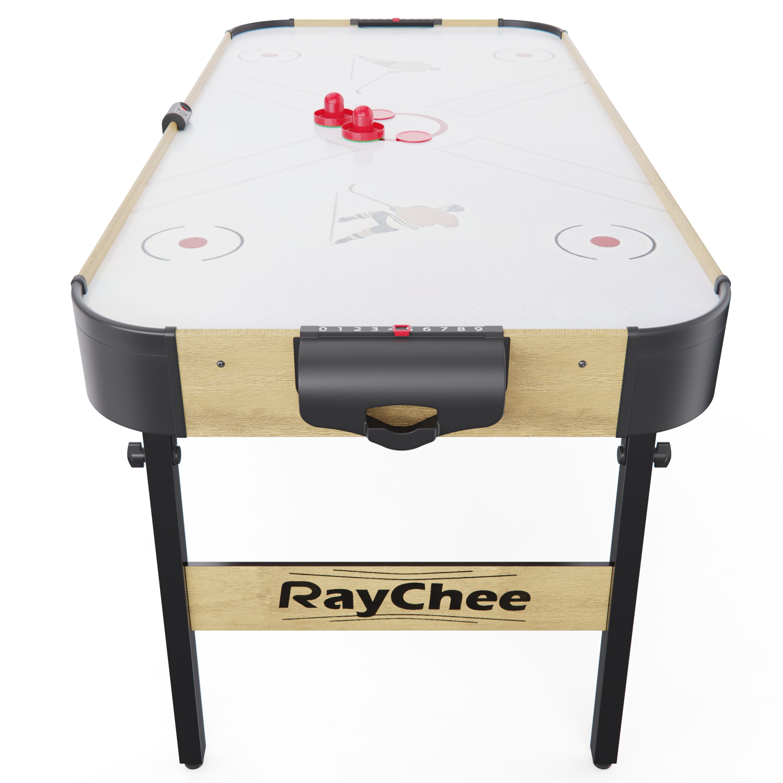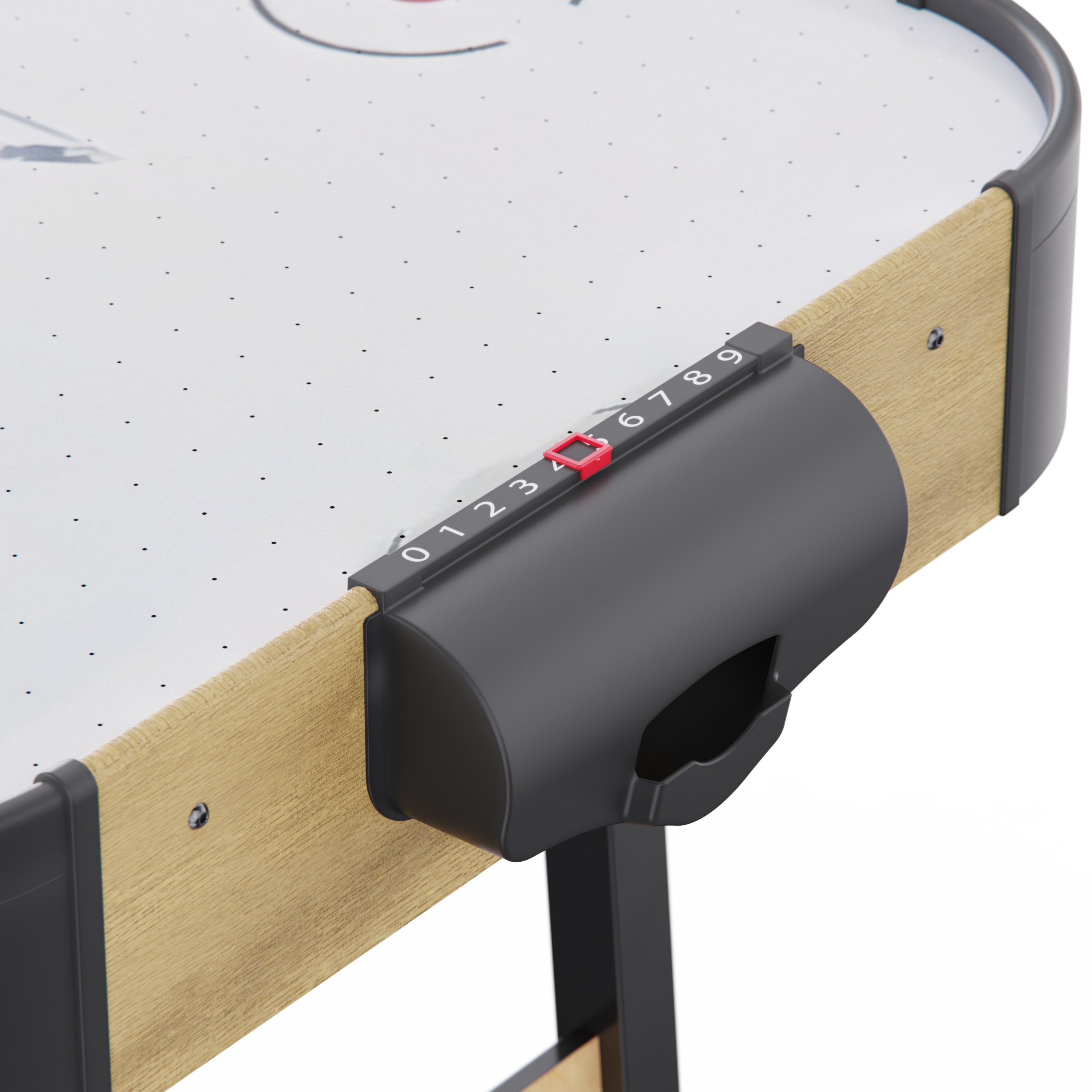 Встроенный вентилятор на 220 В создает воздушную подушку, по которой шайба скользит практически без трения — именно так достигается эффект настоящего аэрохоккея. Для удобства игроков стол оснащён электронным и механическим счётчиком очков, что позволяет отслеживать результаты в реальном времени.