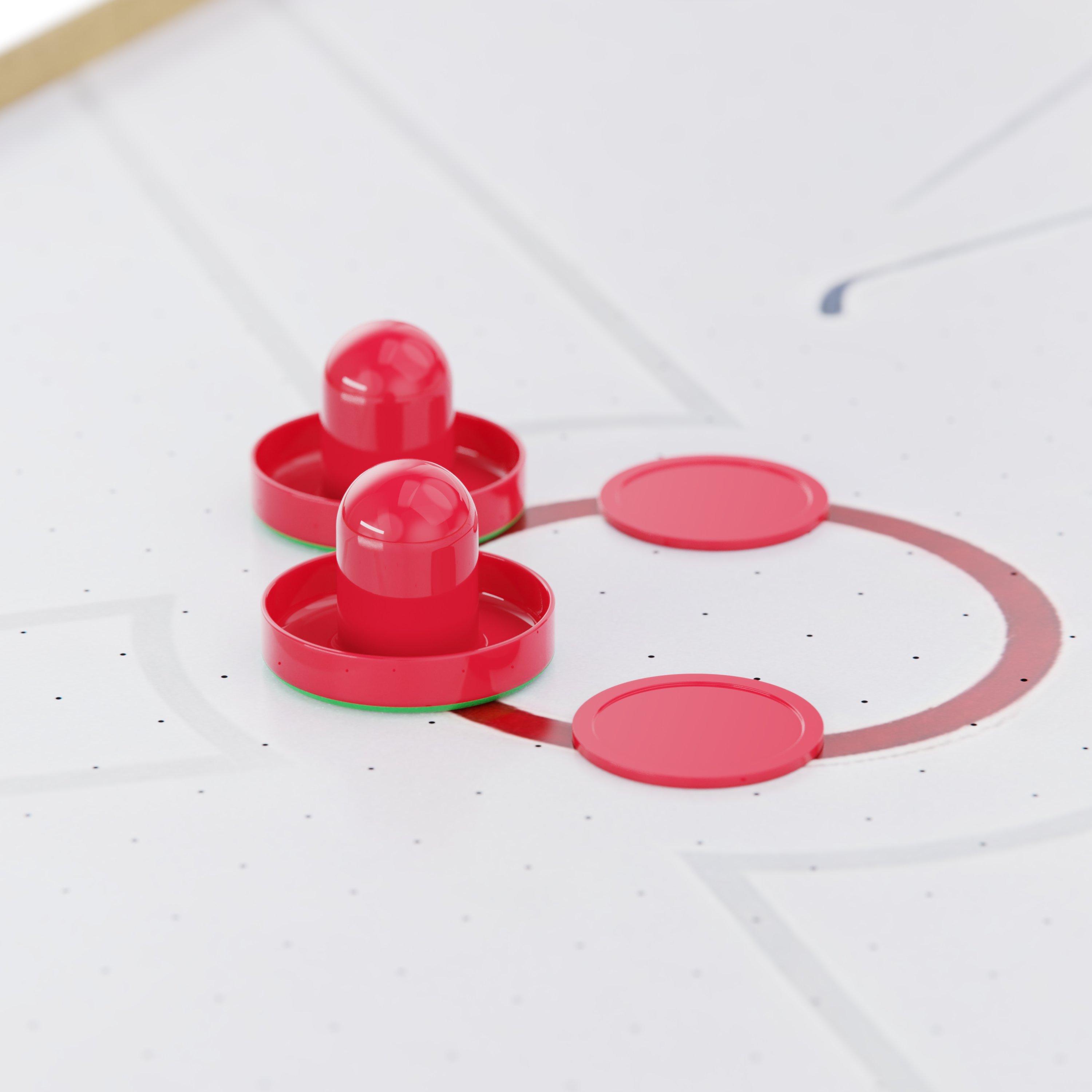 Игровое поле стола выполнено из качественного МДФ с ровным покрытием, что гарантирует гладкую поверхность для легкого скольжения шайбы. Толщина поля 3 мм, бортики высотой 15 мм и толщиной 12 мм защищают шайбу от вылета, обеспечивая комфорт и безопасность игры.