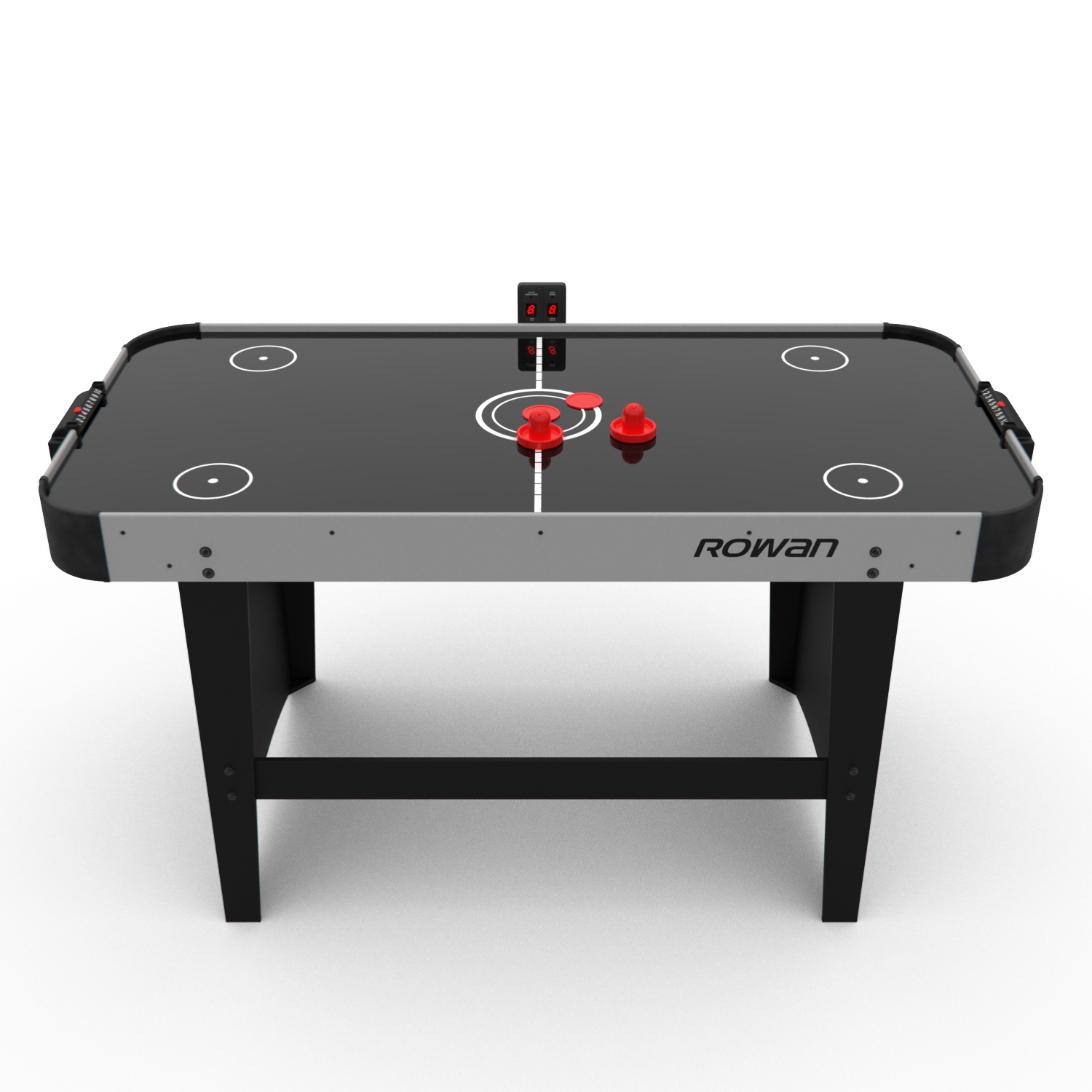 В комплекте с аэрохоккеем ROWAN поставляются 2 биты и 2 шайбы. Мощный компрессор подает воздух через отверстия и создает поле, не требующее особых усилий для передвижения шайбы. Напряжение составляет 220В.