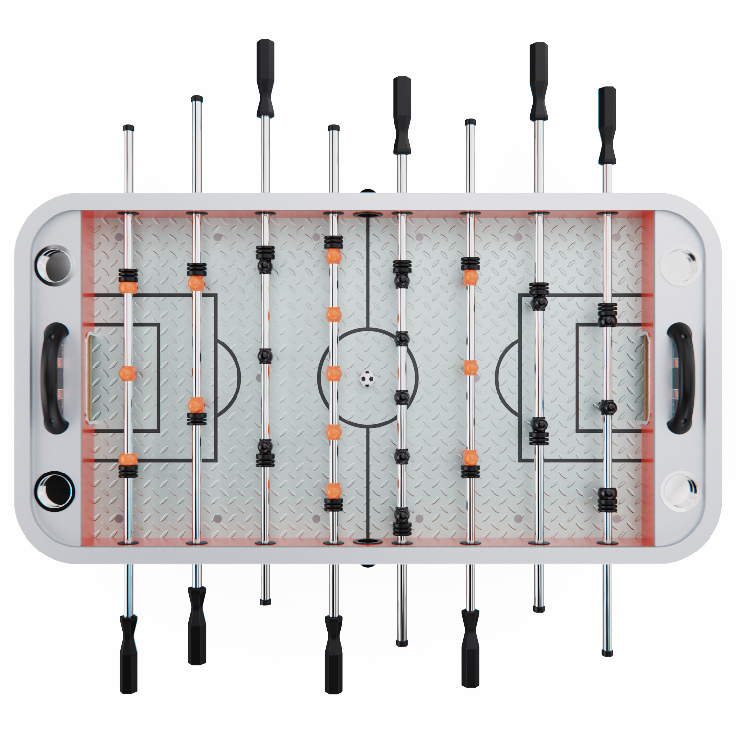 Размер стола — 144 х 76 х 87 см, а игровое поле — 118 х 68 см. Такая площадь оптимальна для маневров, точных ударов и зрелищной игры. Размер мячей — 36 мм, что соответствует стандарту для настольного футбола и обеспечивает отличную управляемость.