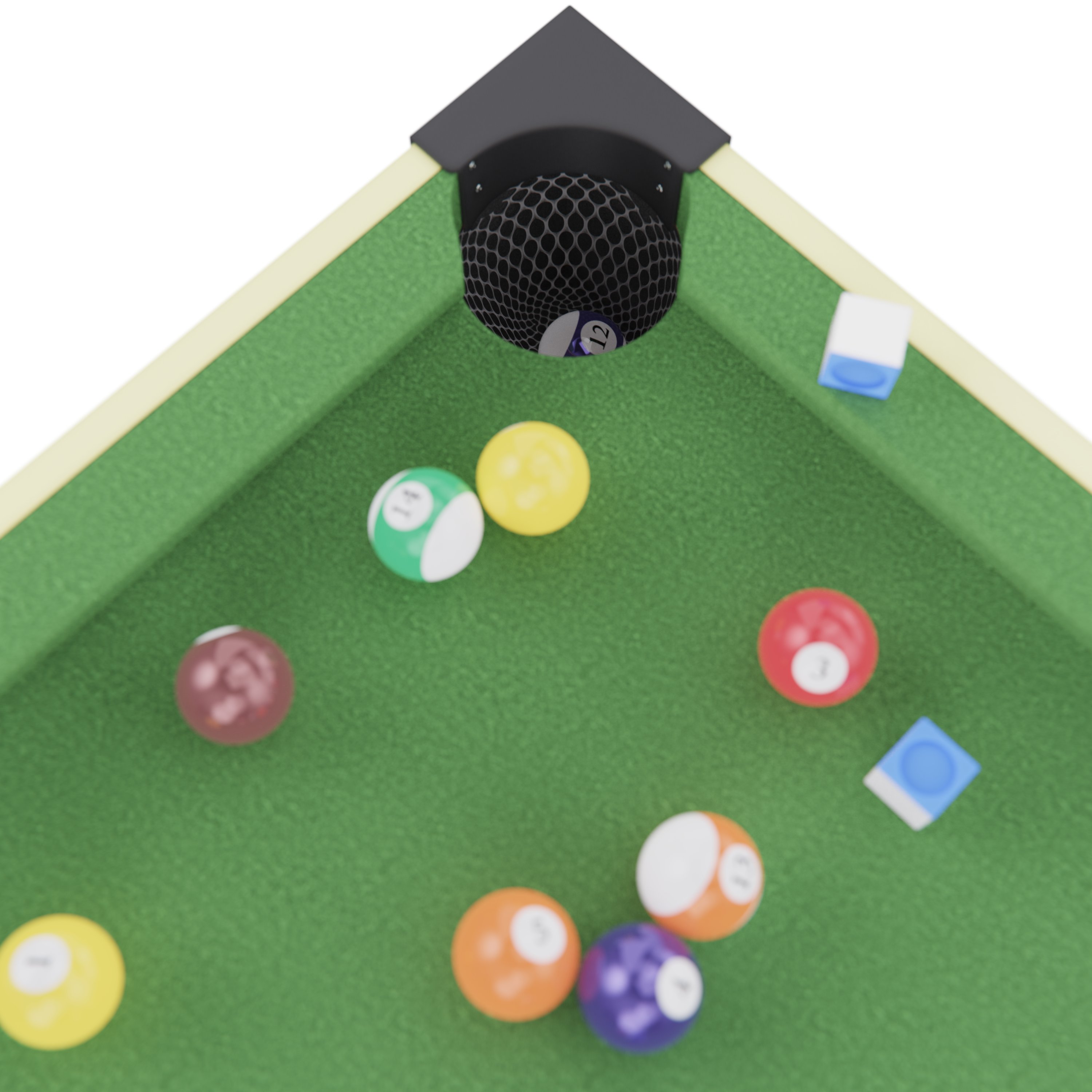 7. Бильярд (треугольник, кий, шары, мел)