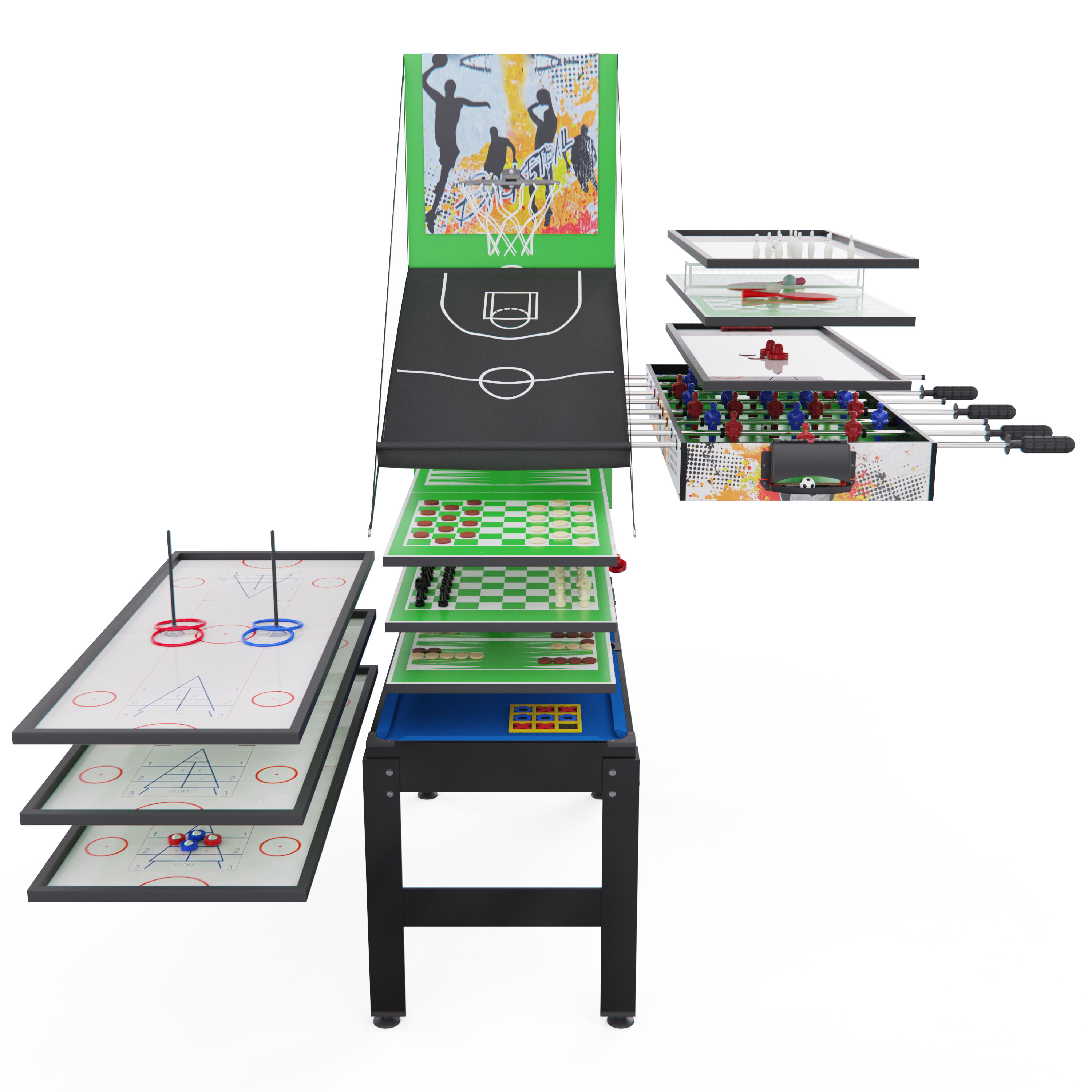 Многофункциональный игровой центр представляет собой уникальное решение для организации активного досуга в домашних условиях. Компактный стол-трансформер объединил в себе 15 различных игровых поверхностей, способных увлечь как детей, так и взрослых.