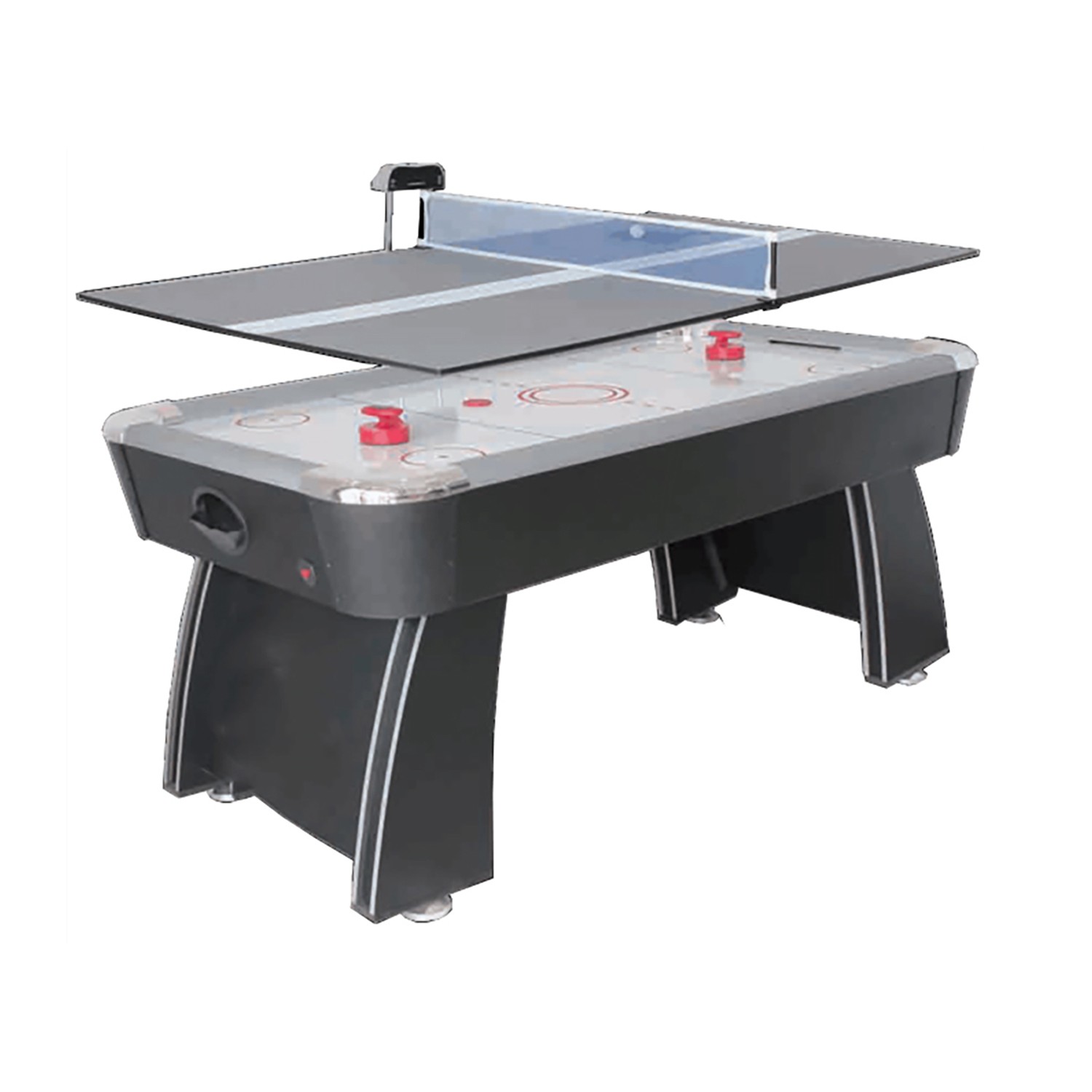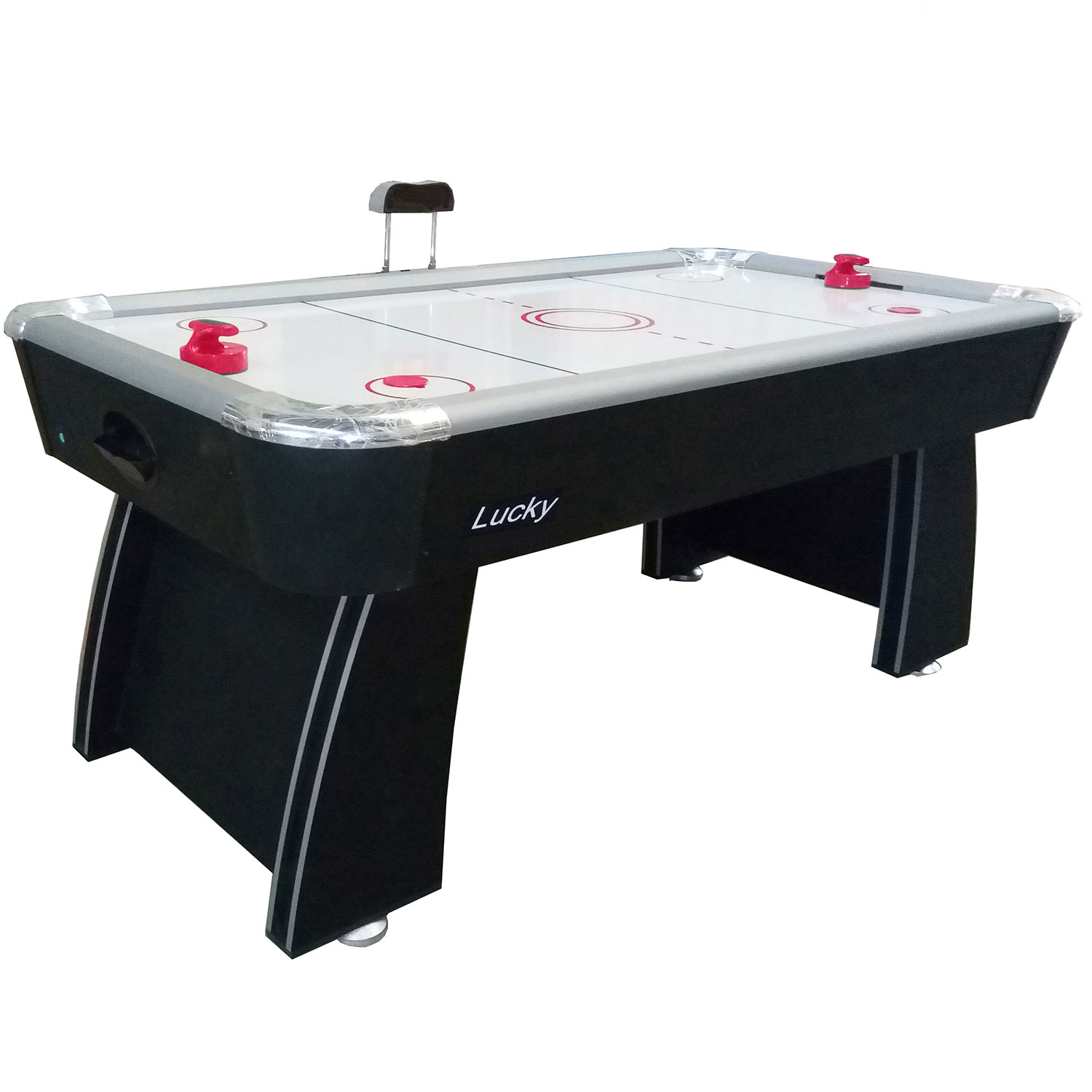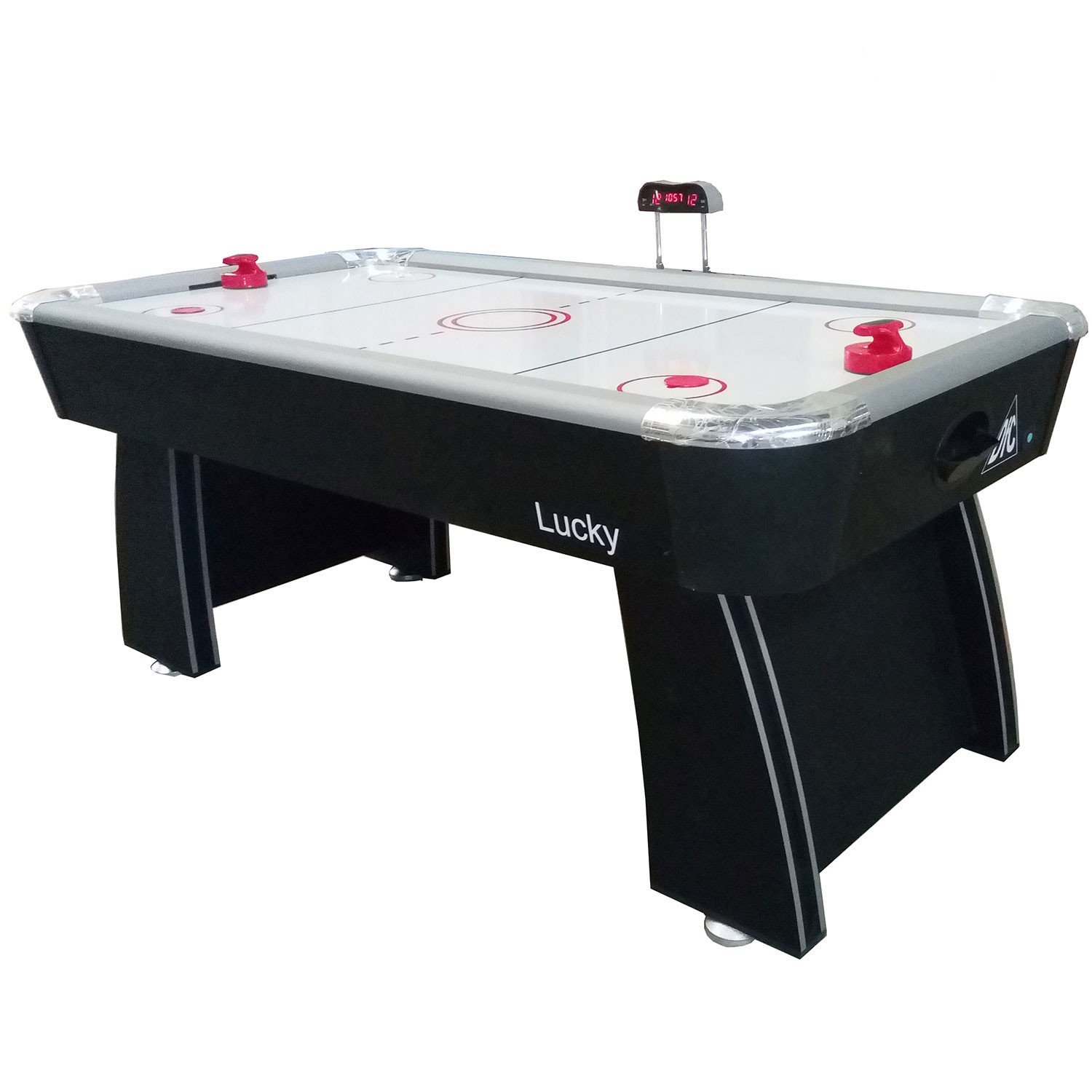 Игровой стол DFC LUCKY DS-GT-15 Игровой стол будет не только отличной покупкой для себя, но и прекрасным подарком. Игра в настольный хоккей очень эмоциональная, захватывающая и проходит на больших скоростях. Почувствуйте звуки и атмосферу знаменитой и популярной игры! Настольный хоккей является отличным развлечением дома или на даче. Стол оборудован электронным табло для подсчета очков с регулировкой высоты . Для игры в настольный теннис необходимо установить дополнительную панель на поле для игры в аэрохоккей. Комплектуется набором аксессуаров. Для игры в аэрохоккей: 2 биты размером 96 мм и 2 шайбы размером 63 мм. Для игры в настольный теннис: 2 ракетки, 1 шарик, сетка. Корпус выполнен из специально обработанного МДФ, сверху покрытого прочной пленкой из ПВХ. Толщина панелей 12 мм, толщина поля для аэрохоккея 5 мм, толщина поля для тенниса 9 мм. Углы стола имеют диаметр 103 мм и защищены хромированными накладками. Мощный компрессор подает воздух через отверстия. Напряжение: 220В Размер стола: 6 футов / 180 х 97,5 х 77,5 см Размеры упаковки: 187,5 х 105,5 х 18 см Вес: 67 / 79 кг Производитель: DFC Страна производства: Китай Гарантия: 12 месяцев Инструкцию скачать