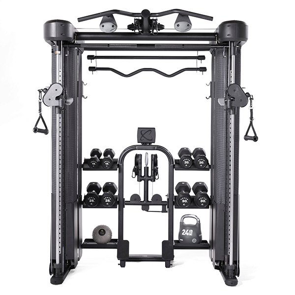 Inspire FT2 PRO Functional Trainer — это многофункциональная станция, которая эффективно использует полезное пространство, заменяя по функционалу целый спортзал. Она сочетает в себе запатентованную технологию машины Смита и функциональные тренажеры в просторном и современном дизайне, предлагая высококачественное решение для домашних тренировок. Тренажер подходит для проработки всех групп мышц и оснащен системой из 6 тяговых блоков, интегрированной штангой, регулируемой перекладиной для подтягиваний, рукоятками и 13 дополнительными аксессуарами, а также полками для хранения свободных весов. Машина СмитаОдним из ключевых преимуществ FT2 PRO является интеграция машины Смита с весовыми стеками. Встроенный несъемный гриф, расположенный между стойками, исключает необходимость в дисках. В отличие от классических систем со свободными весами, здесь штанга соединена со стеком, что облегчает выполнение жимов. После завершения упражнений штанга автоматически фиксируется в верхнем положении и оснащена предохранителями для защиты от непреднамеренного падения. Тяговые блоки и весовые стекиТренажер оборудован 6 симметрично расположенными тяговыми блоками, что обеспечивает равномерное распределение нагрузки и позволяет выполнять упражнения как для обеих сторон тела одновременно, так и поочередно. Это способствует гармоничному развитию и симметрии мышц. Тренажер имеет два весовых стека по 75 кг каждый, с плитами, изготовленными из прочного чугуна. Двойное сопротивлениеУсиленная система сопротивления позволяет удвоить нагрузку, увеличивая максимальный вес до 363 кг, что значительно расширяет возможности для силовых тренировок. Усиленная рамаКонструкция FT2 PRO выполнена из высокопрочной стали, что гарантирует непревзойденную надежность и долговечность. Усиленная рама с порошковым покрытием устойчива к коррозии и механическим повреждениям, обеспечивая стабильную работу при самых интенсивных нагрузках. Пожизненная гарантия на раму подтверждает ее исключительное качество. Изменяемая высота рукоятейТренажер оснащен 40 регулируемыми по высоте отверстиями для рукоятей, что позволяет легко адаптировать тренажер под индивидуальные параметры пользователя. Это обеспечивает комфорт, гибкость в настройках и разнообразие тренировочных программ. Система шкивовСистема из 6 нейлоновых шкивов позволяет тренироваться в различных позициях, что значительно расширяет возможности тренировок и позволяет настраивать нагрузку в зависимости от уровня подготовки. Удобная система регулировки среднего блока шкивов предлагает 6 различных положений для выполнения тяг, приседаний с поясом и других упражнений. Опции для эффективных тренировокРегулируемая турникетная перекладина оснащена несколькими вариантами хвата, что позволяет выполнять упражнения с разной техникой, а многофункциональный ремень добавляет возможность подтягиваний с поддержкой, как в гравитроне. Стальные тросы, рассчитанные на высокие нагрузки, обеспечивают безопасн...