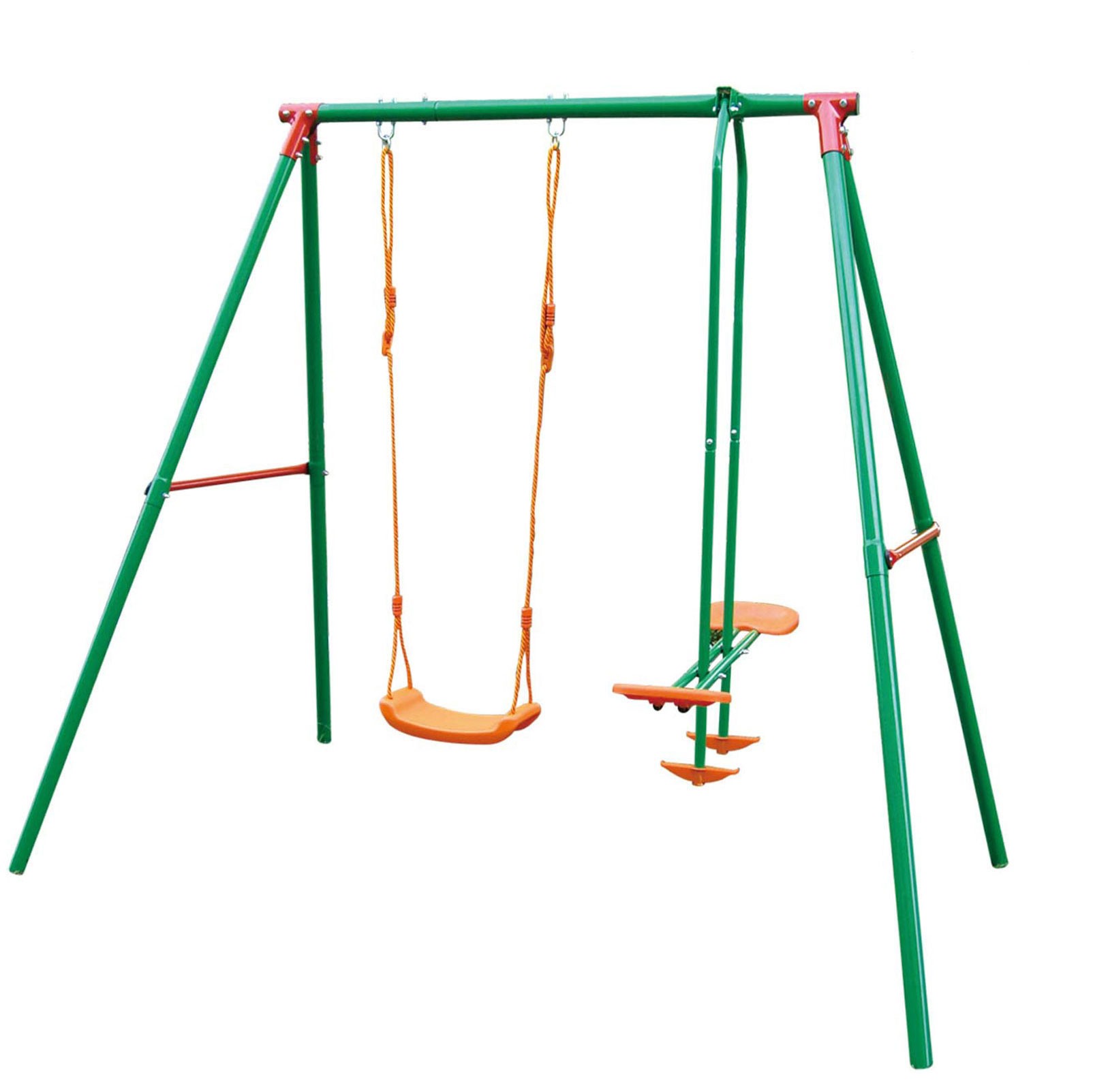 Комплекс для весёлого времяпрепровождения на открытом воздухе состоит из верёвочных качелей, качелей-качалки для двоих. Регулируемые веревки для качелей сидение качелей - пластик подходит для детей: 3-10 лет металл - сталь, покрытие -порошковая краска верхняя труба: 50.8x2мм ноги : 45x1.5мм боковые трубки: 25.4x1.0 мм размеры в собранном виде: 206x155x200см (Д х Ш х В) размер коробки 144.5 x 24 x 19 см Производитель:DFC Произведено в Малайзии Инструкция скачать