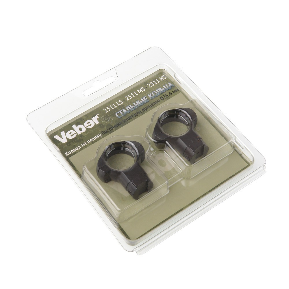 Высокие кольца Veber 2511 НS предназначены для установки прицела с посадочным диаметром 25,4 мм на оружие с планкой «ласточкин хвост» шириной 11 мм.