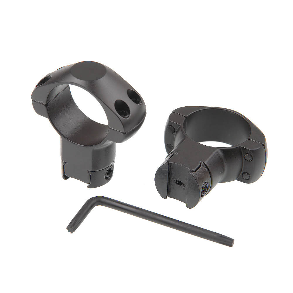 Cтальные кольца, высокие, для прицелов диаметром 25,4 мм, высота установки прицела 29 мм, крепление на планку «ласточкин хвост» 11 мм с радиусным посадочным местом.