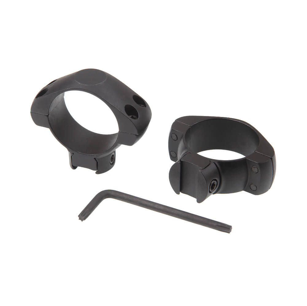 Cтальные кольца, низкие, для прицелов диаметром 30 мм, высота установки прицела 21,75 мм, крепление на планку «ласточкин хвост» 11 мм с радиусным посадочным местом.