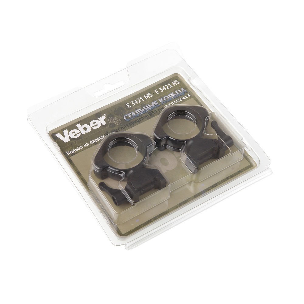 Быстросъемные средние кольца Veber E 3421 MS предназначены для установки прицела с посадочным диаметром 34 мм на оружие с планкой Weaver.