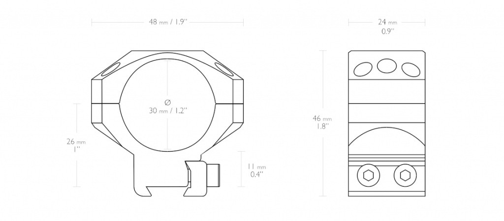 Кольца тактические Hawke на 30мм на планку 9-11мм средние (24106) на 6 винтов