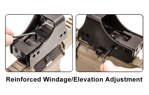 Положение прицельной метки относительно высоты ствола позволяет использовать коллиматор совместно с механическими прицельными приспособлениями.