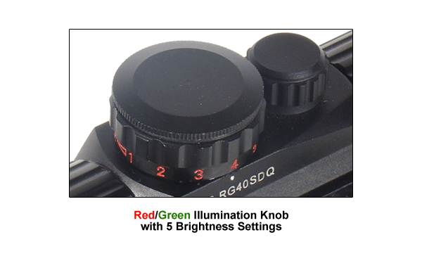 Регулировка яркости прицельной марки осуществляется при помощи позиционного переключателя(реостата).