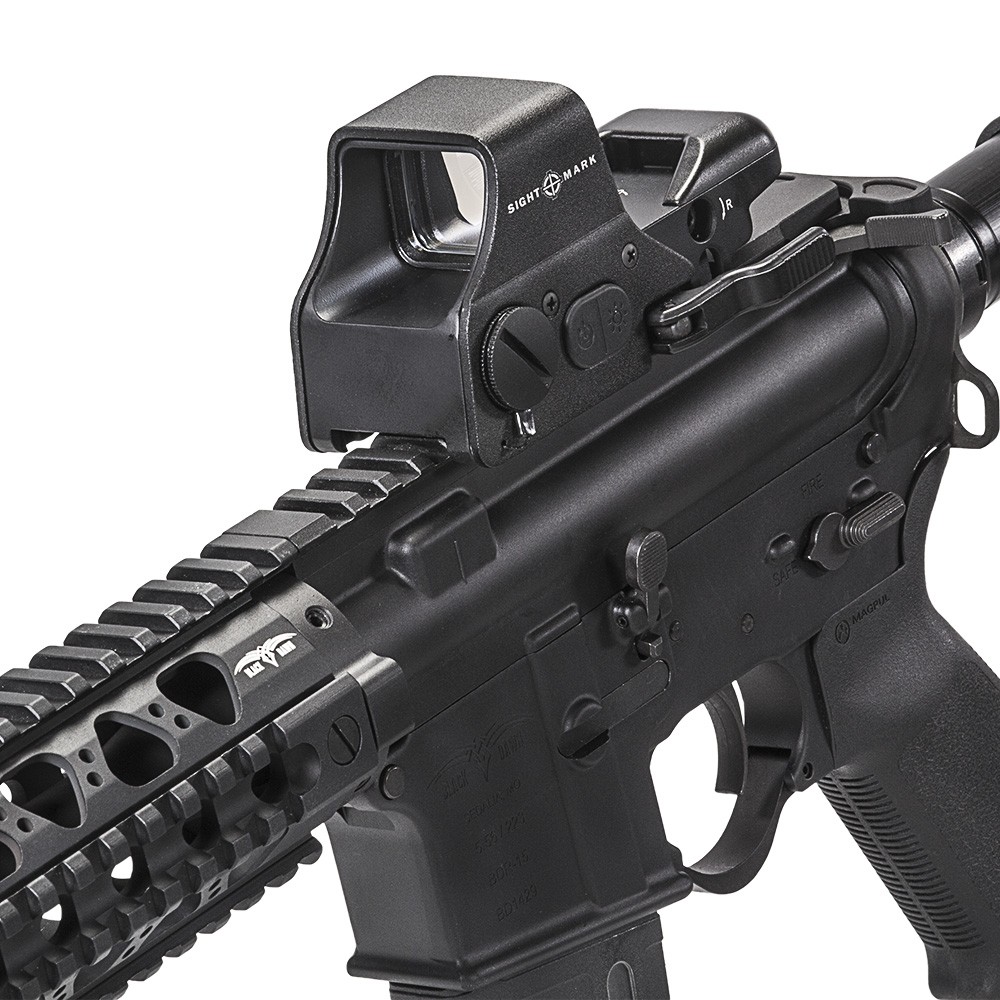 Sightmark SM26008 – характерная модель серии Ультра Шот, где представлены большие прицелы, достаточно легкие для своих размеров. Данная модель коллиматора значительно сокращает время монтажа устройства на оружие благодаря быстросъемной базе. Устройство коллиматорного прицела предполагает соединение изображения прицельной марки, демонстрирующейся на линзе, с выбранной целью. Охотники используют такой прибор во время стрельбы из винтовок и дробовиков с посадкой «Weaver». Он обеспечивает качество изображения при естественном освещении (в дневное и вечернее время суток).