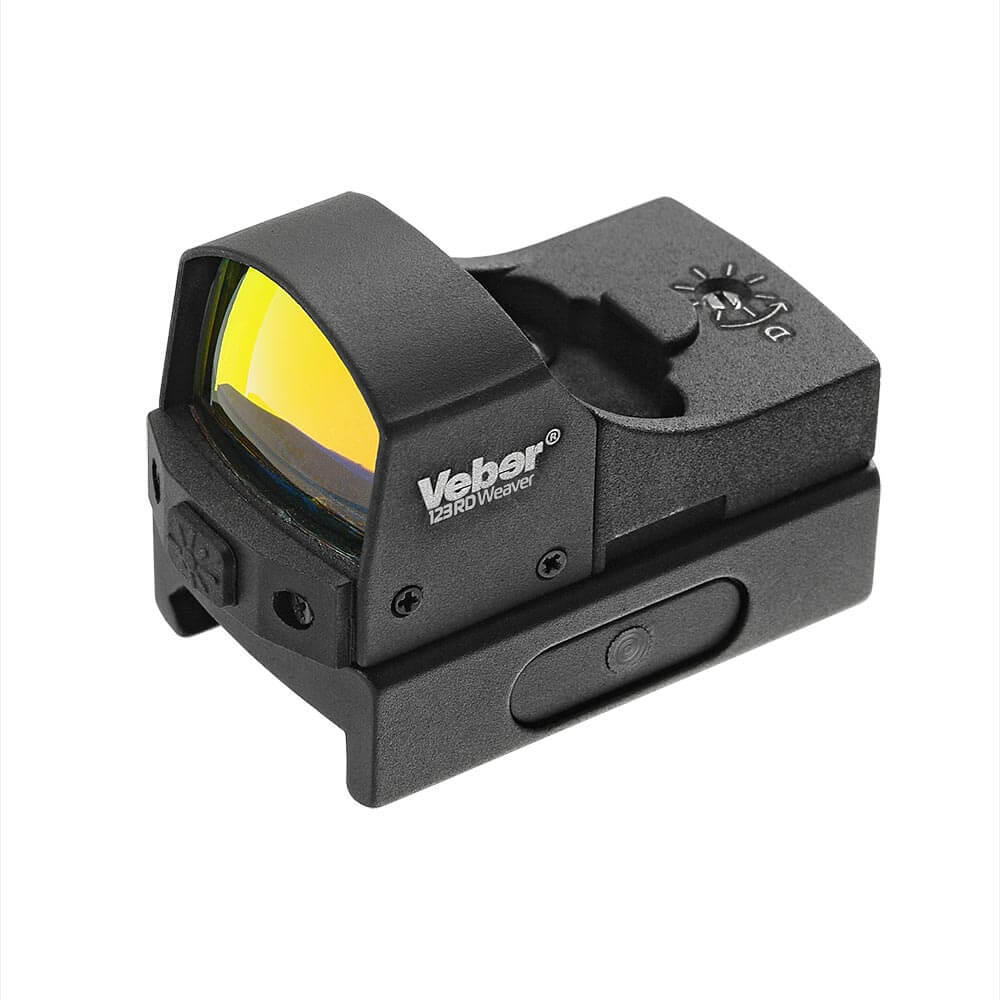 Veber Black Fox 123 RD Weaver - тактический коллиматорный прицел с красной точкой (зеркальный прицел) и увеличением 1,07х. Базовое крепление — на планку Weaver. Через специальный переходник прицел можно без опаски устанавливать и на вентилируемую планку оружия. Коллиматорный прицел позволяет прицеливаться с обоими открытыми глазами, чтобы задействовать периферическое зрение и сохранить восприятие глубины пространства.