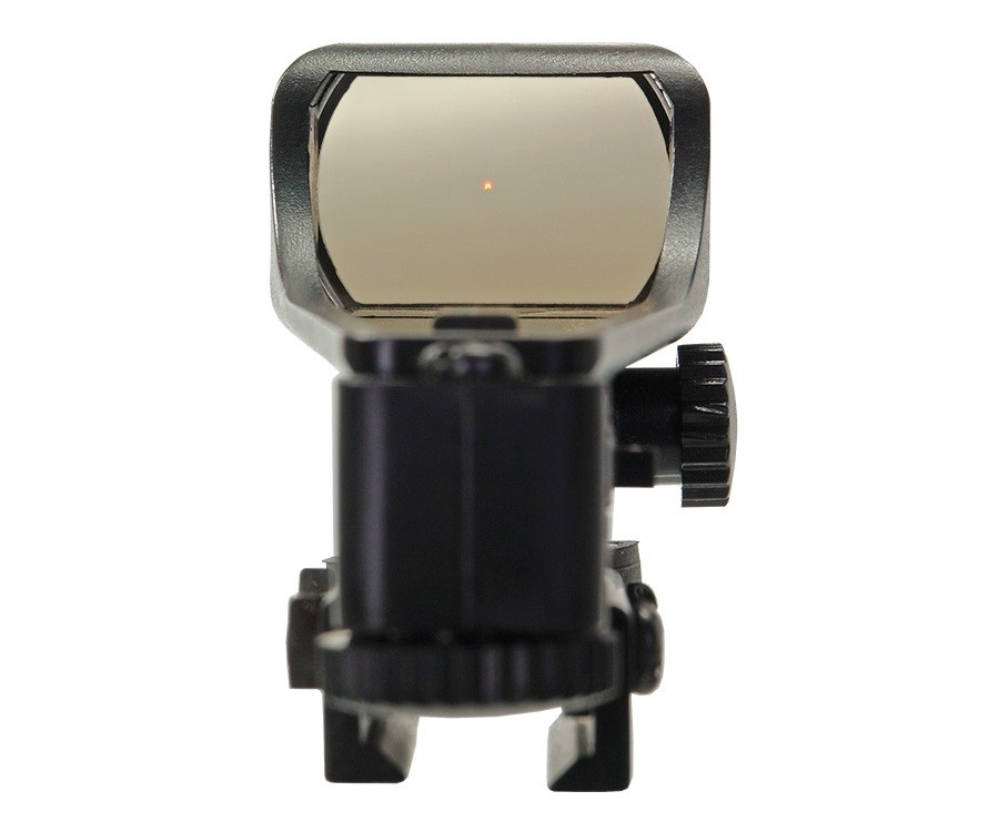 Прицел оборудован двумя винтами ввода поправок для пристрелки, двигается не точка, а вся верхняя часть прицела относительно базы. Резиновая крышка батарейного отсека под линзой выполняет дополнительную функцию амортизатора. Размер линзы — 30х20 мм.