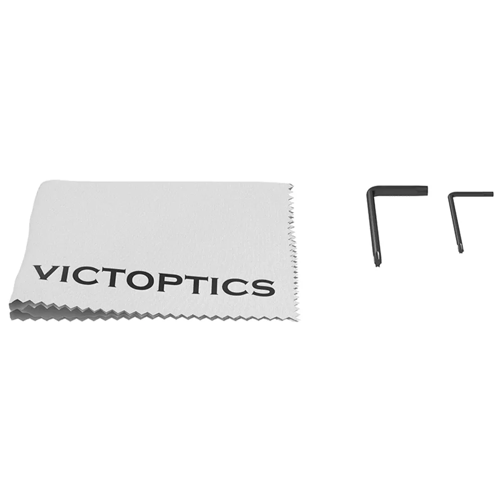 Розничная упаковка, крепление Weaver, резиновая крышка объектива, шестигранные ключи, чистящая салфетка