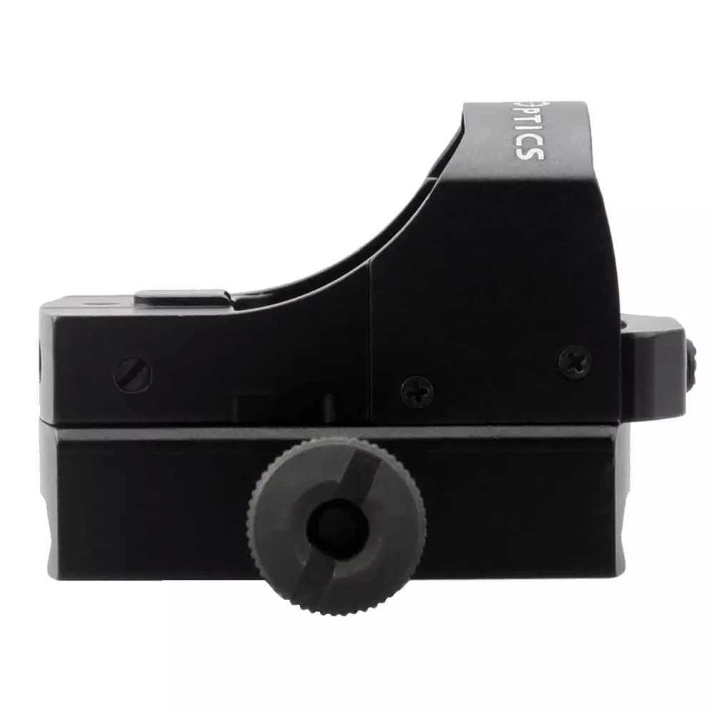 Размер окна коллиматора составляет 18 на 22,5 мм. Открытый коллиматор обеспечивает широкое поле зрения 6.5° на 100 ярдов. Можно выполнять прицеливание, но при этом контролировать окружающую обстановку на площадке. Многослойное просветление окна позволяет отчетливо разглядеть цель даже в условиях ограниченной видимости. Статичная кратность 1х в паре с неограниченным удалением выходного зрачка позволяет вести стрельбы двумя открытыми глазами из любого положения.