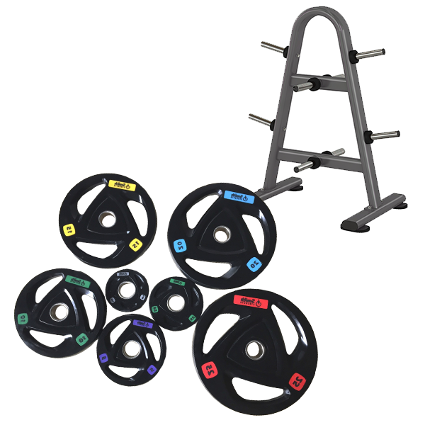 Комплект обрезиненных Дисков (157,5 кг) + Стойка для хранения