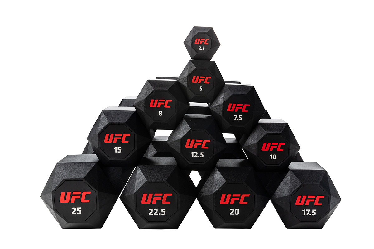 Комплект обрезиненных октагональных гантелей 5 пар от 10 до 20кг UFC Octagon Dumbbell