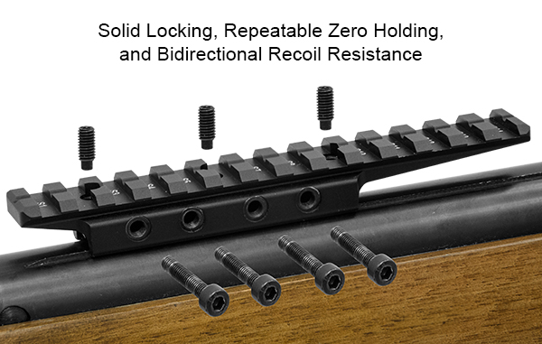 В конструкции использованы специальные 3 винта-стопора для компенсации отдачи.