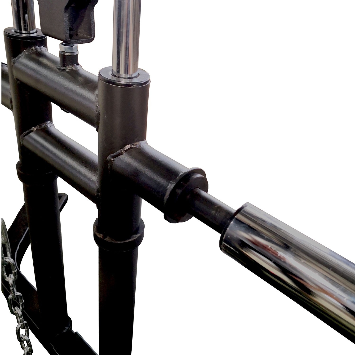 Рама тренажера изготовлена из высококачественного стального профиля размером 60х60 и толщиной 2 мм. Покраска в нейтральный черный цвет. Направляющие роликов и держатели дисков выполнены из нержавеющей стали.