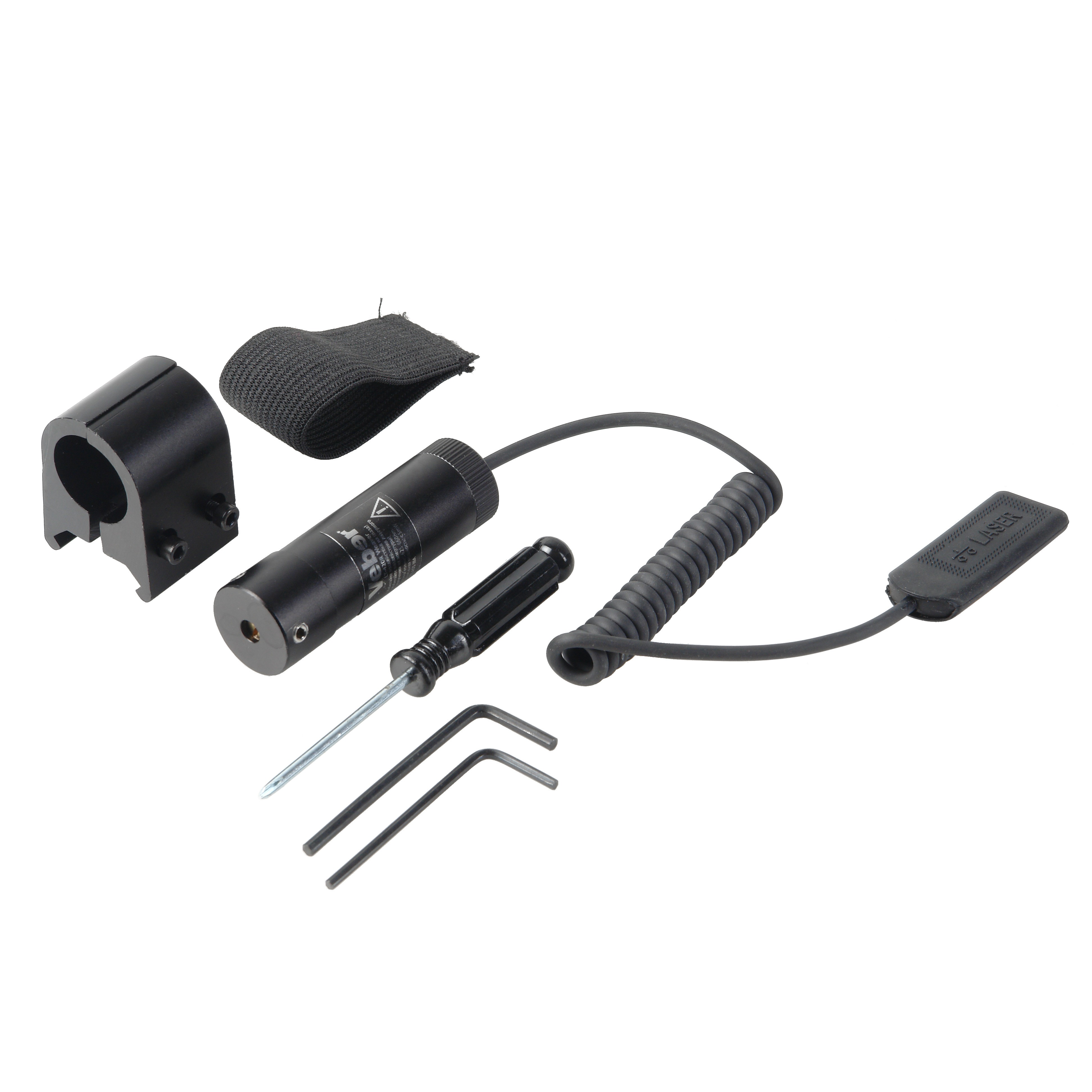 В комплекте съемное крепление на Weaver, которое позволяет установить изделие не только прямо на оружие, но и на корпус телескопического прицела (через переходники, имеются в продаже, в комплект не входят). Выносная кнопка включения на спиральном проводе позволяет стрелку расположить её на оружии в удобном для него месте.