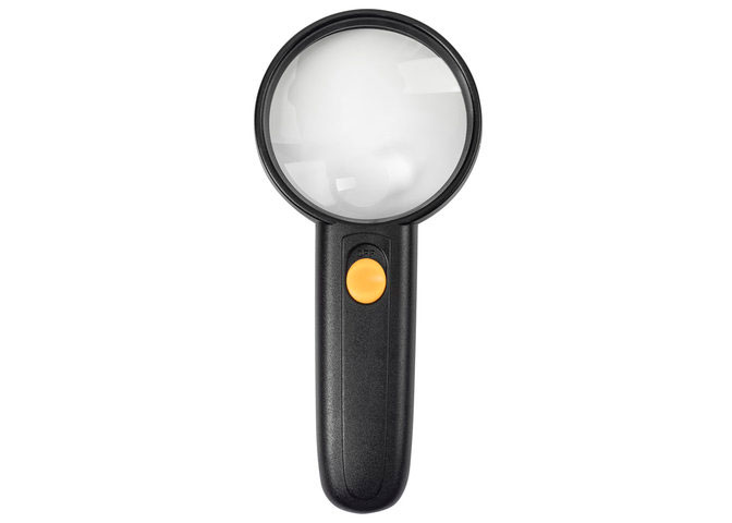 Ручная лупа BRAUBERG 4х, 65 мм с подсветкой (454129) станет надежным оптическим помощником для людей с особенностями зрения. Прибор значительно облегчит чтение, изучение карт, чертежей и просмотр иллюстраций. Асферическая линза диаметром 65 мм выполнена из оптического пластика и передает четкое изображение с увеличением 4 крата. Облегченный корпус черного цвета сделан из пластика. Есть светодиодная подсветка, работающая от 3 батареек ААА.
