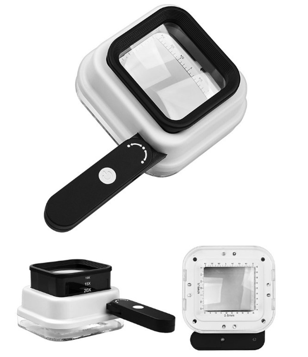 Контактная измерительная лупа Kromatech TH-8016 – это настольный увеличительный прибор, который обеспечивает возможность изучать мелкие предметы на приближении в 10, 15 и 20 раз. Лупа имеет измерительную шкалу, с помощью которой удобно определять размеры наблюдаемого объекта. Цена деления шкалы составляет 0,5 мм. Прибор имеет две встроенных подсветки: светодиодная позволит вести наблюдения даже в темное время суток, а ультрафиолетовая поможет в определении поддельных банкнот. 4 ярких светодиода могут работать до 20 часов от комплектных батареек. Небольшие габариты увеличительного прибора делают его удобным для использования как дома, так и в поездке.