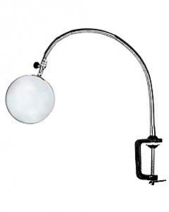Трехкратная лупа с линзой большого диаметра, которая установлена в металлическую оправу и закреплена на гибком держателе. С его помощью удобно ориентировать лупу в пространстве, поворачивая ее под разными углами. В качестве фиксатора выступает струбцина – она обеспечивает очень надежное крепление. Фиксировать лупу можно практически на любой поверхности: горизонтальной, вертикальной или наклонной.
