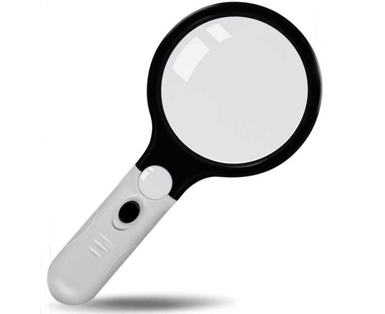 Ручная круглая лупа Kromatech 2/30x, 138/25 мм, с подсветкой (4 LED) 70138A будет отличным компаньоном для людей с ослабленным зрением. Прибор дает два варианта увеличения: основная линза (138 мм) увеличивает в 2 раза, дополнительный участок (диаметром 25 мм) – в 30 раз. Применять лупу можно и в условиях недостаточной освещенности, поскольку она снабжена подсветкой. 4 светодиодные лампочки располагаются возле линзы и работают от батареек. Облегченный корпус выполнен из пластика.