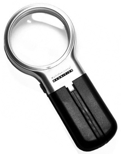 Круглая ручная лупа-трансформер Kromatech TH-7006 – это просмотровая лупа с увеличением 3 крата, линзой 63 мм и светодиодной подсветкой. Ручка лупы является складным штативом, который позволяет установить прибор на стол, освободив обе руки. Линза из оптического пластика дает равномерное увеличение и не разобьется при падении. Оправа и ручка сделаны из легкого пластика. Такая лупа хорошо подойдет для чтения, разгадывания кроссвордов, рассматривания изображений и т. д. Два светодиода работают от батареек (2 шт. типа АА, нет в комплекте).