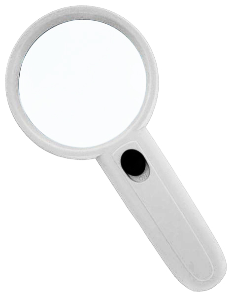 Легкая лупа на ручке с линзой из оптического пластика. Данная модель дает 4-кратное увеличение. Для подсветки используются два ярких белых светодиода, поэтому лупой можно пользоваться даже при слабом освещении.