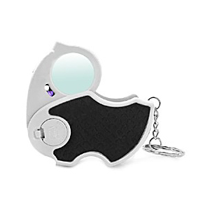 Складная лупа Kromatech 45х с двумя типами подсветки отлично подойдет для ювелирного дела, работы с предметами искусства и денежными купюрами. Ее кратность составляет 45х. Диаметр линзы – 25 мм. Складной корпус позволяет быстро прятать линзу в прочный пластиковый чехол-ручку. Подсветка состоит из двух светодиодов – белого и ультрафиолетового. Для питания используются 3 батарейки типа G10 / LR1130 (в комплекте).