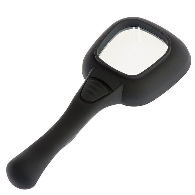 Лупа на ручке Veber 600558 снабжена встроенной подсветкой из шести светодиодов. Пять из них излучают белый свет, шестой светит ультрафиолетом. Лупу можно использовать в темном помещении и для распознавания водяных знаков на купюрах. Подсветка питается от 4 батареек типа AG10. Линза сделана из оптического пластика. Корпус и ручка пластиковые, с мягким и удобным резиновым покрытием.