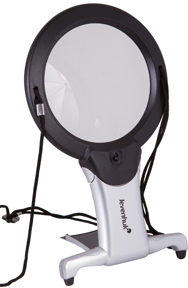 Лупа Levenhuk Zeno Vizor N2 – лупа с бифокальной линзой и встроенной светодиодной подсветкой. Ее можно носить на шее – в комплекте есть шейный ремешок – или же устанавливать на стол – лупа комплектуется специальной подставкой. Подсветка яркая: два светодиода хорошо освещают все пространство под основной линзой и позволяют работать даже без внешнего освещения.