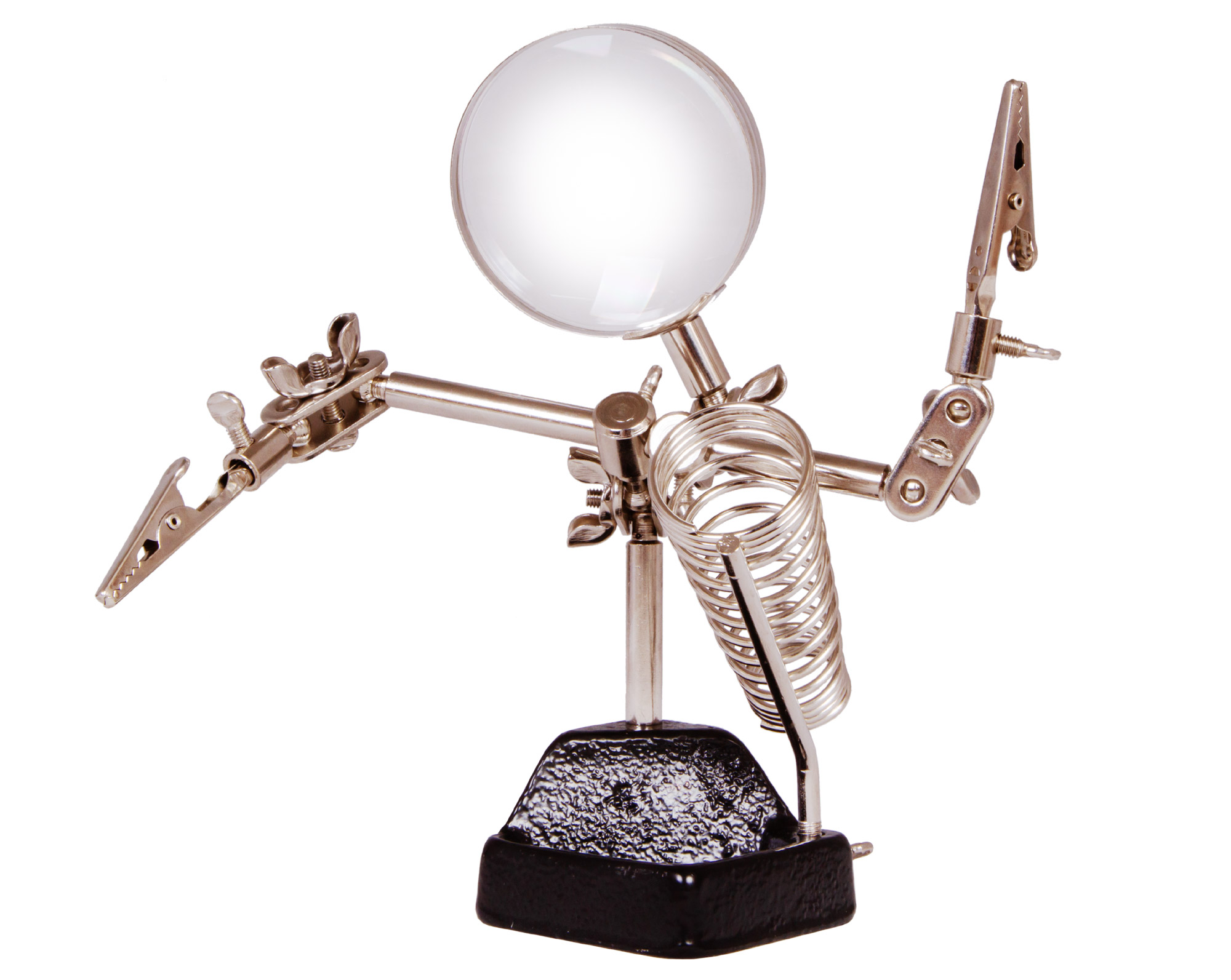 Линза штативной лупы Levenhuk Zeno Refit ZF11 дает 4-кратное увеличение. Она выполнена из оптического пластика, а оправа и корпус – из металла. Еще одно преимущество лупы – возможность перемещать линзу по горизонтали и наклонять под разными углами. В конструкции предусмотрен отдельный держатель для паяльника. В устойчивом основании лупы расположен лоток для размещения мелких деталей и инструментов.