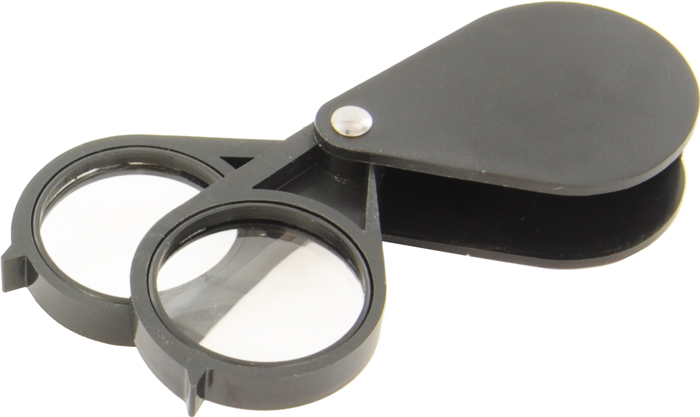 Компактная двойная лупа удобна при ношении с собой. Она поместится даже в маленький карман. Лупа имеет две линзы, изготовленные из оптического пластика. Они имеют в диаметре 30 мм и обеспечивают десятикратное увеличение. Линзы убираются в пластиковый корпус каплевидной формы.