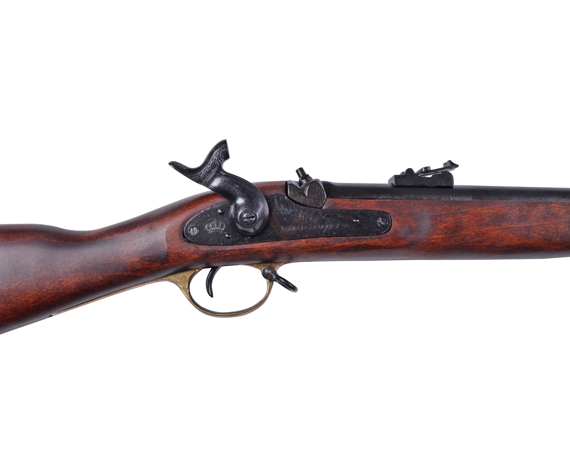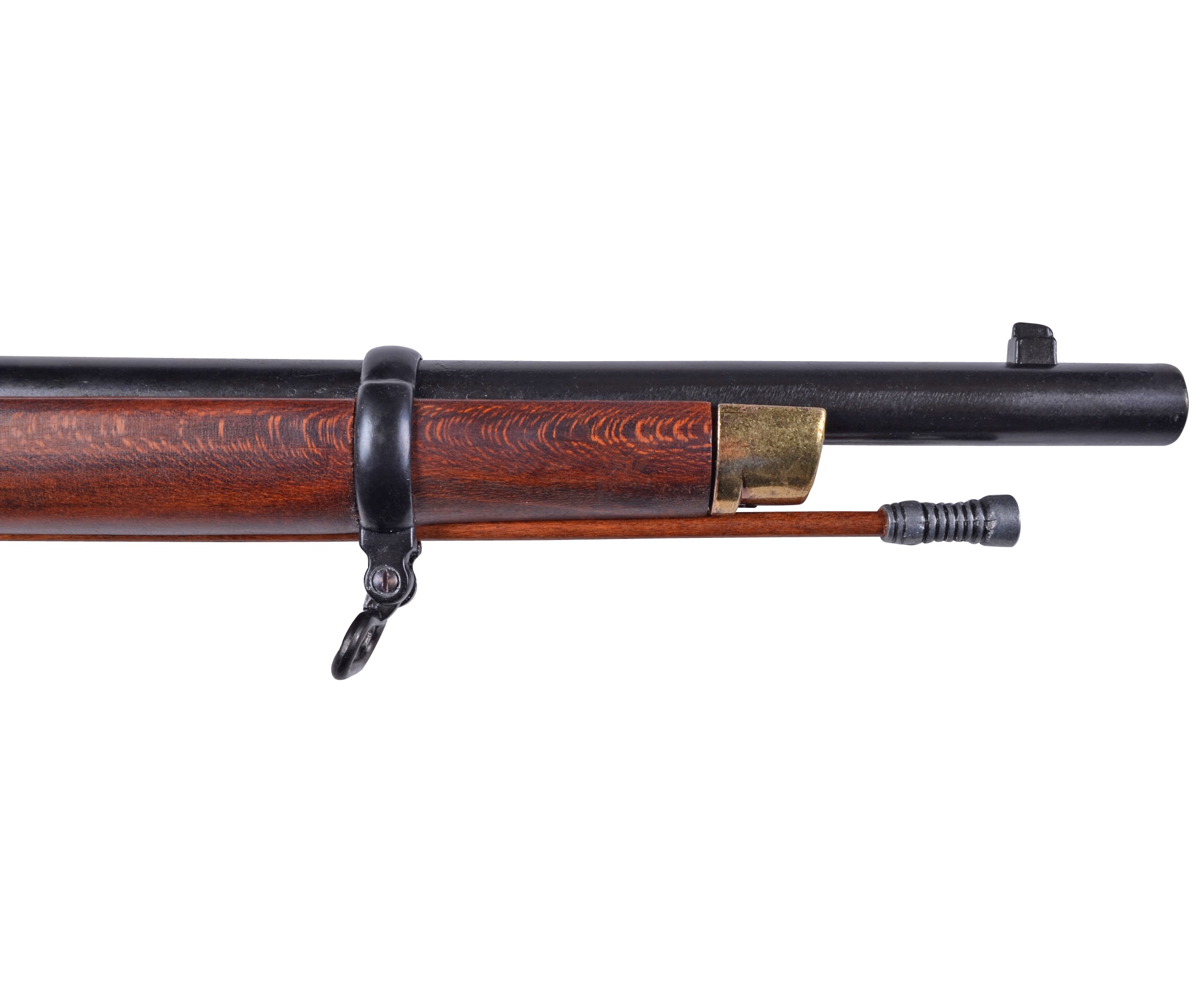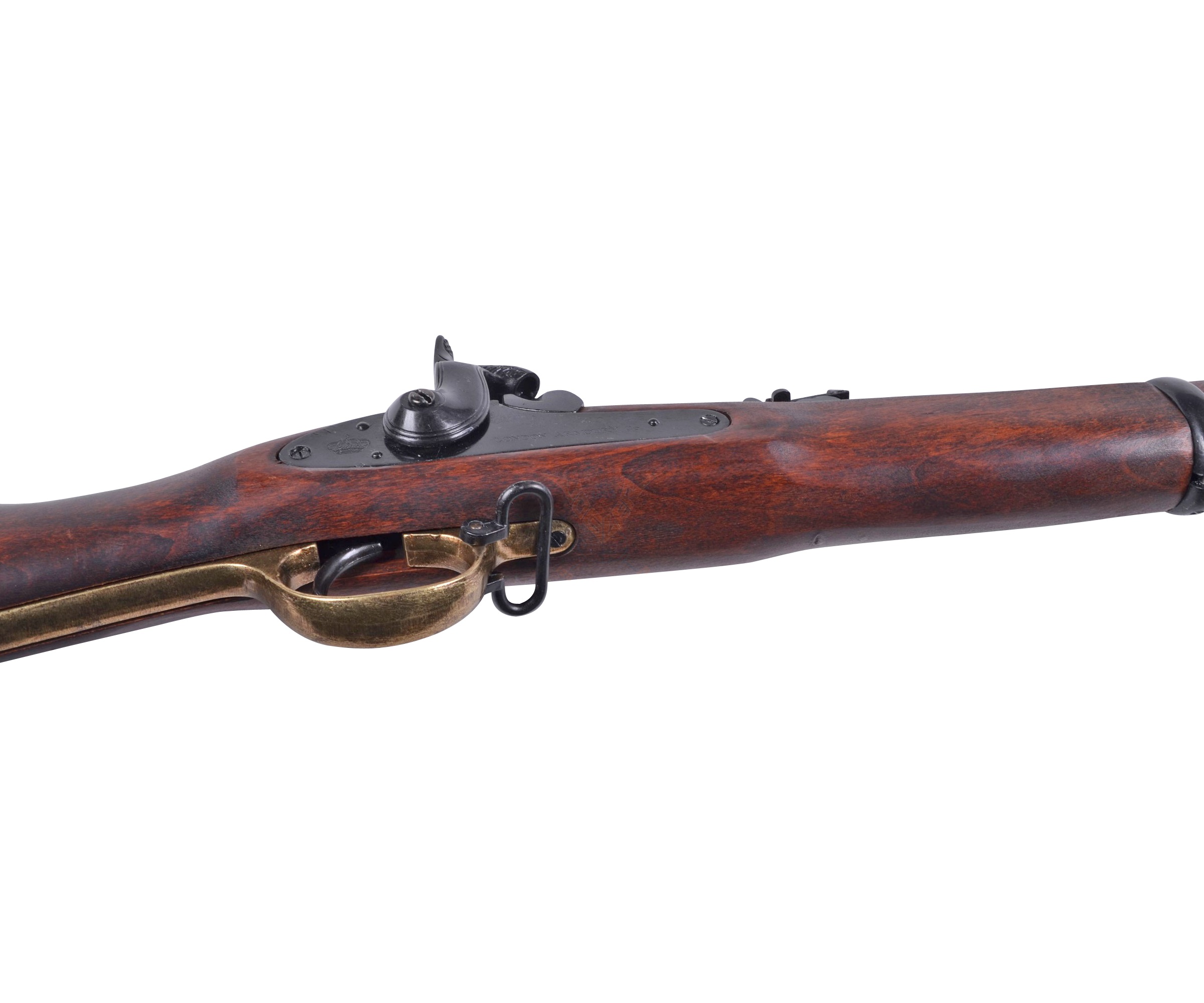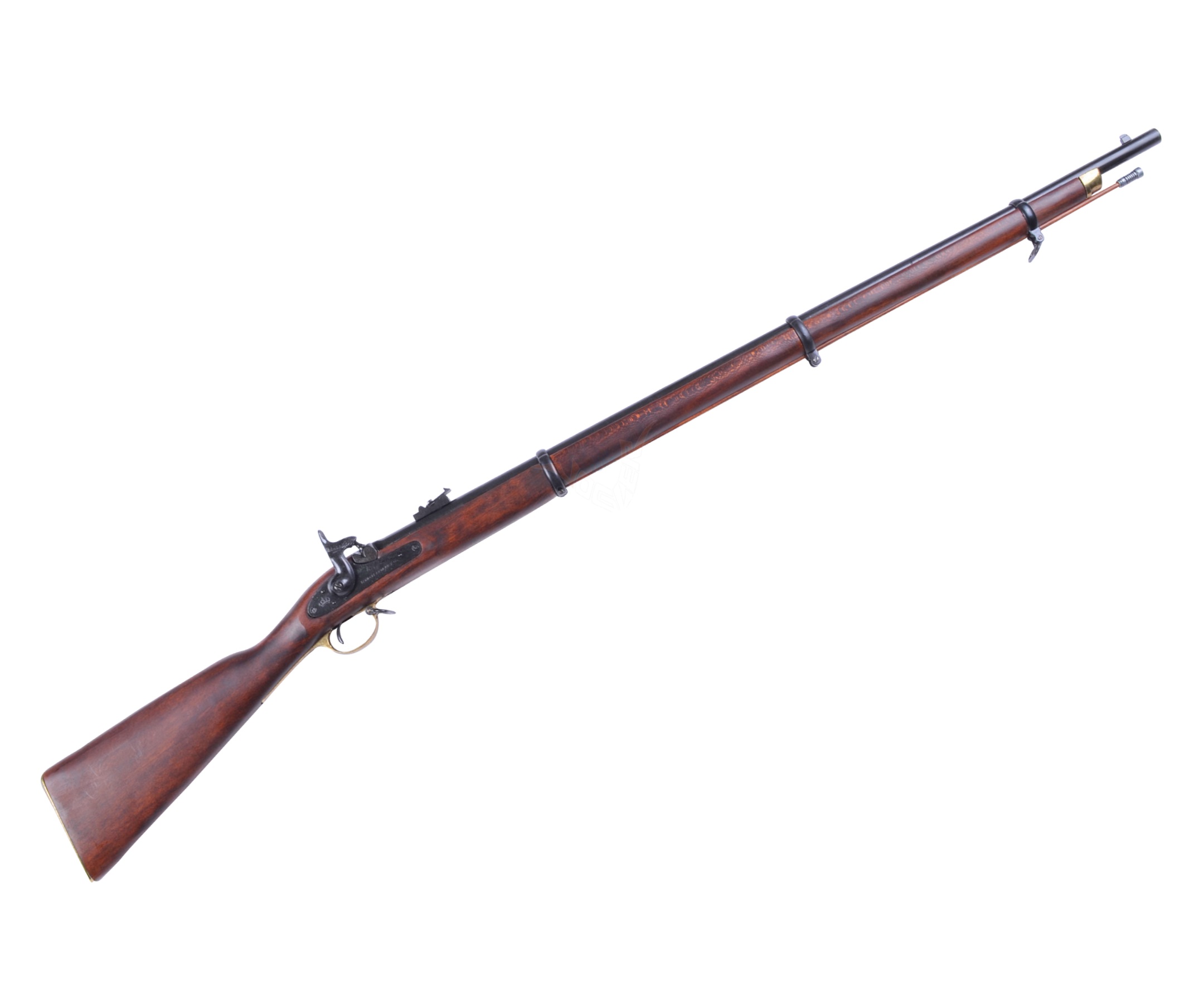 Мушкетон, выполненный мастерами бренда сувенирно-декоративного оружия Denix, представляет собой точную копию этого ружья производства 1853 года. Ложе и приклад ружья изготовлены из натурального дерева, для остальных деталей использован цинковый сплав хорошей прочности и долговечности. Параметры макета в точности соответствуют оригинальному образцу – длина ружья составляет 140 см, его вес – 2,6 кг. За счет функционирующего ударно-спускового механизма оружие обеспечивает максимальное сходство с боевым прототипом. Ниже ствола расположен шомпол, необходимый для забивания пули в ствол.
