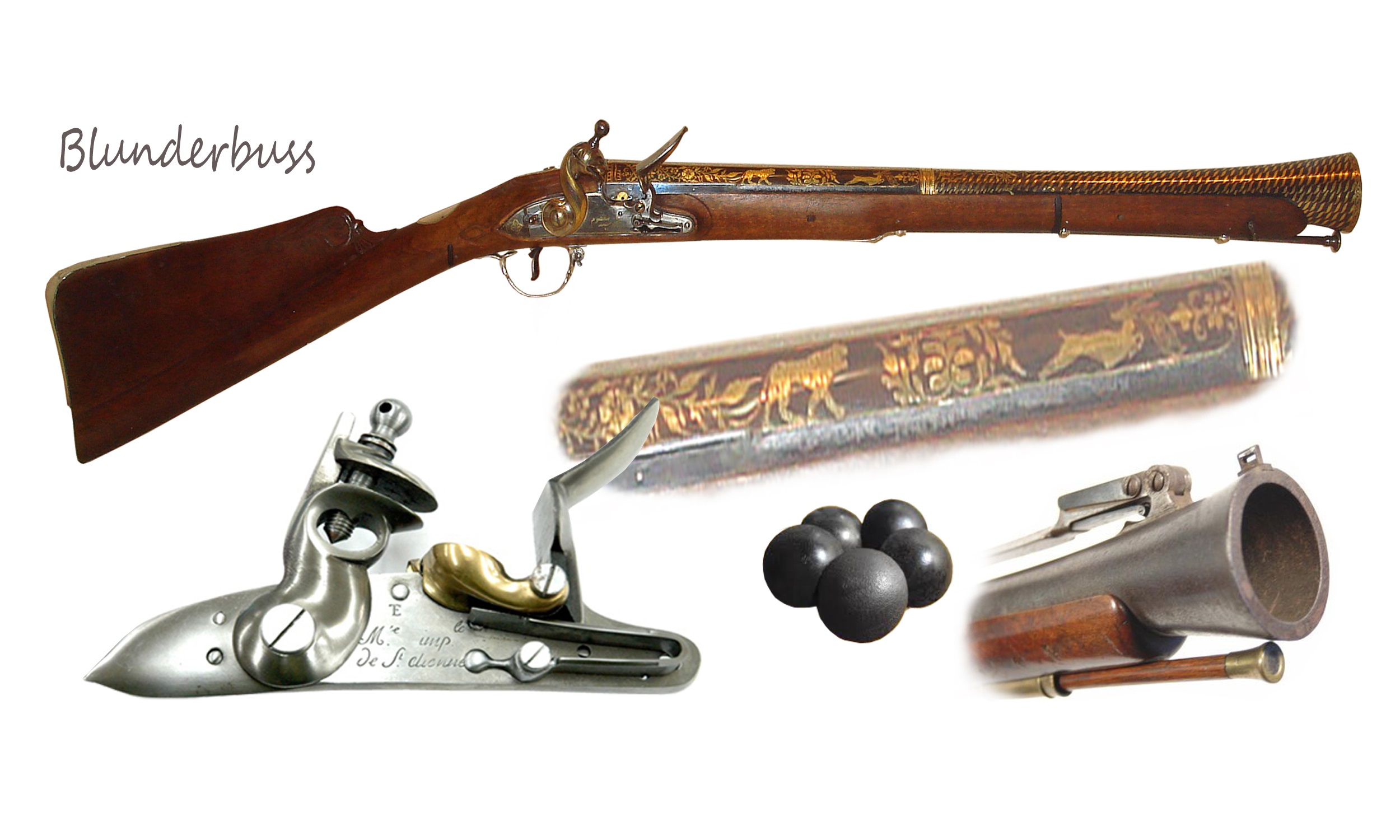 Макет мушкетон пиратский – это массогабаритная копия настоящего пиратского оружия, активно использовавшегося в процессе захвата кораблей в период Золотого века пиратства, точнее – в конце этого периода. Мушкетон (с французского mousqueton) иначе назывался абордажным пистолетом, он появился в середине 16 столетия, и в основном использовался на флоте. В 17-18 веках картечные мушкетоны стали любимым оружием пиратов и контрабандистов, и использовались ими вплоть до 20 века. Если говорить об английских пиратах, то они в 18 веке контролировали Ла-Манш, продвигались по всей морской территории Вест-Индии, захватывали корабли у берегов Азии и Африки. В 17 - начале 18 века пиратство приобрело невиданный размах. Среди самых колоритных фигур можно вспомнить капитана Черная борода (в миру Эдвард Тич), бывшего солдата английской армии, за голову которого правительство Англии обещало серьезные деньги. Капитан Черная борода грабил английские колонии, регулярно совершал набеги на Ямайку. Вероятно, пираты Тича использовали именно мушкетоны в процессе взятия на абордаж кораблей.