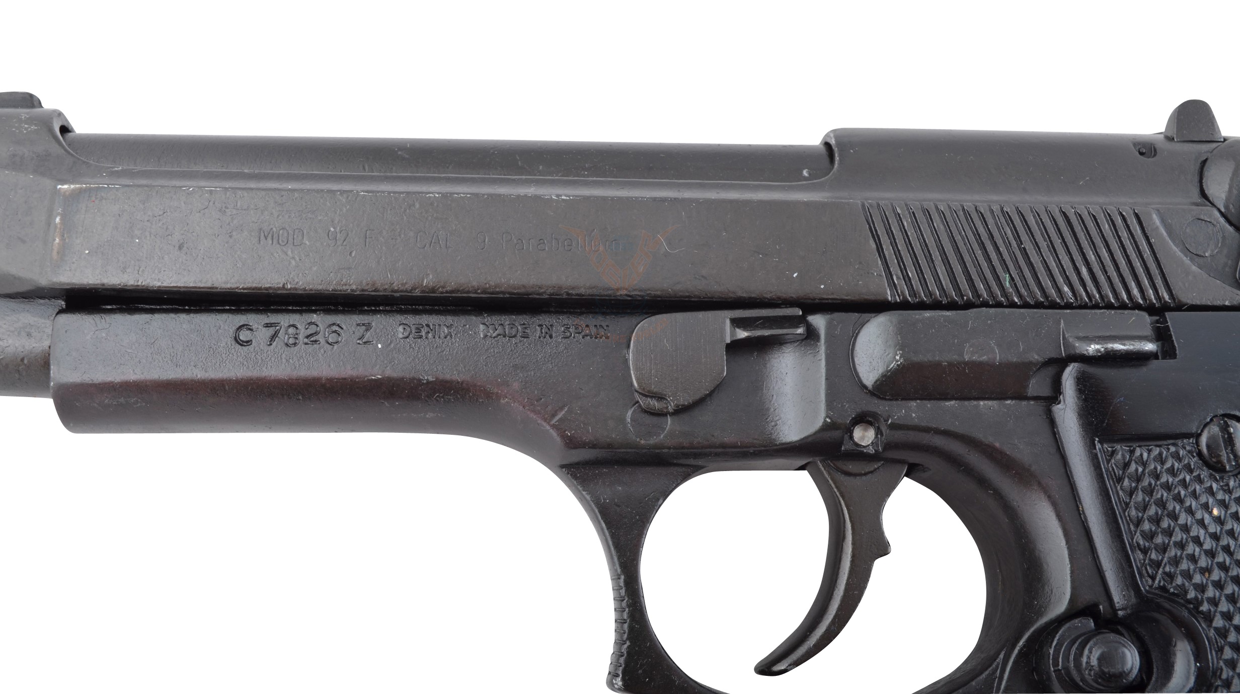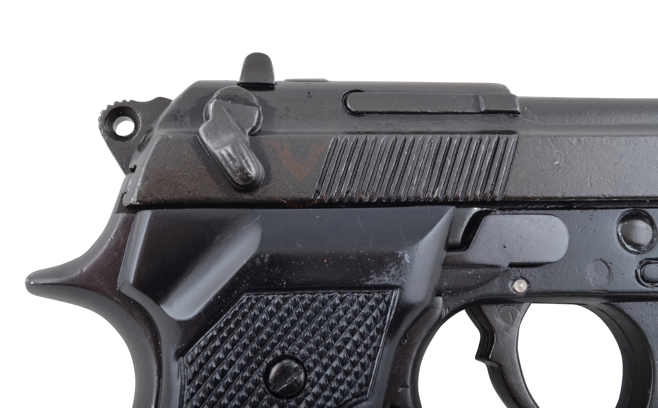 Макет пистолет Беретта 92F – это выполненная в полном масштабе копия популярного во всем мире итальянского оружия. Признание стрелков-любителей профессионалов пистолет Беретта получил благодаря своим отличным эксплуатационным характеристикам, высокой убойной силе и точности стрельбы. Беретта, кроме того, был удобен в ношении и использовании. Беретта 92 – одна из наиболее известных и популярных моделей. На его основе во всем мире было создано масса модификаций. Итальянский Беретта 92F, например, сумел стать победителем конкурса на стандартный пистолет американской армии, и под маркировкой М9 поступил на вооружение американской армии. США закупили у компании Беретта более миллиона единиц пистолетов М9. У Беретта 92F УСМ двойного действия с открытым положением курка, используется автоматическая блокировка ударника. Пистолет состоит из 65 элементов.