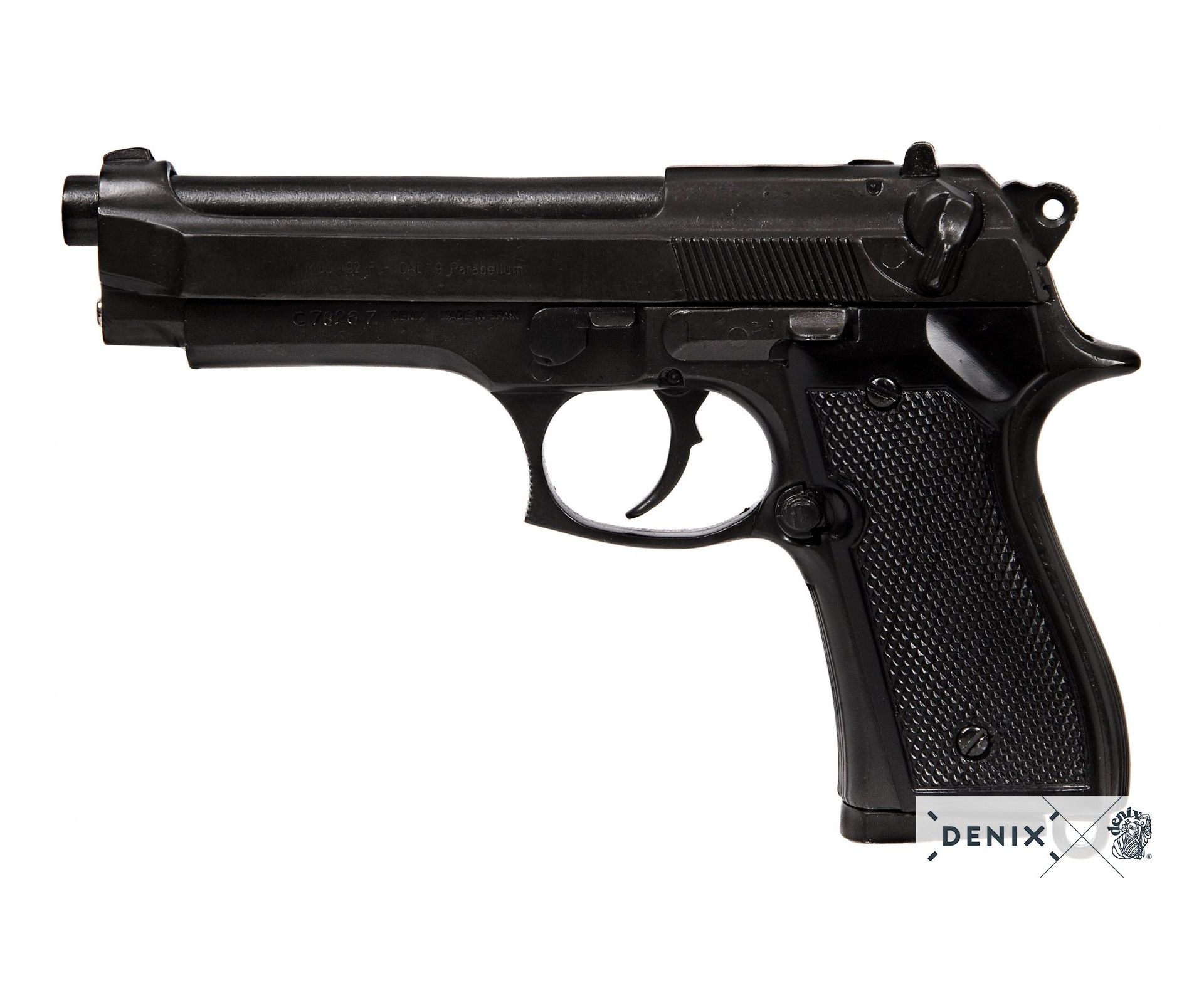 Макет пистолет Беретта 92F от Denix является декоративно-сувенирной копией реального оружия, поэтому и его внешний вид, и габариты отвечают оригиналу. Масса пистолета составляет 1,29 кг, длина – 25 см. Использованы металлический сплав ЦАМ (на основе цинка, алюминия и меди), прочность которого достаточна для модификации данного назначения. Накладки на рукоять выполнены из пластика, сверху на пластик нанесено рифление. Для придания макету большей реалистичности производитель оставил действующим ударно-спусковой механизм.