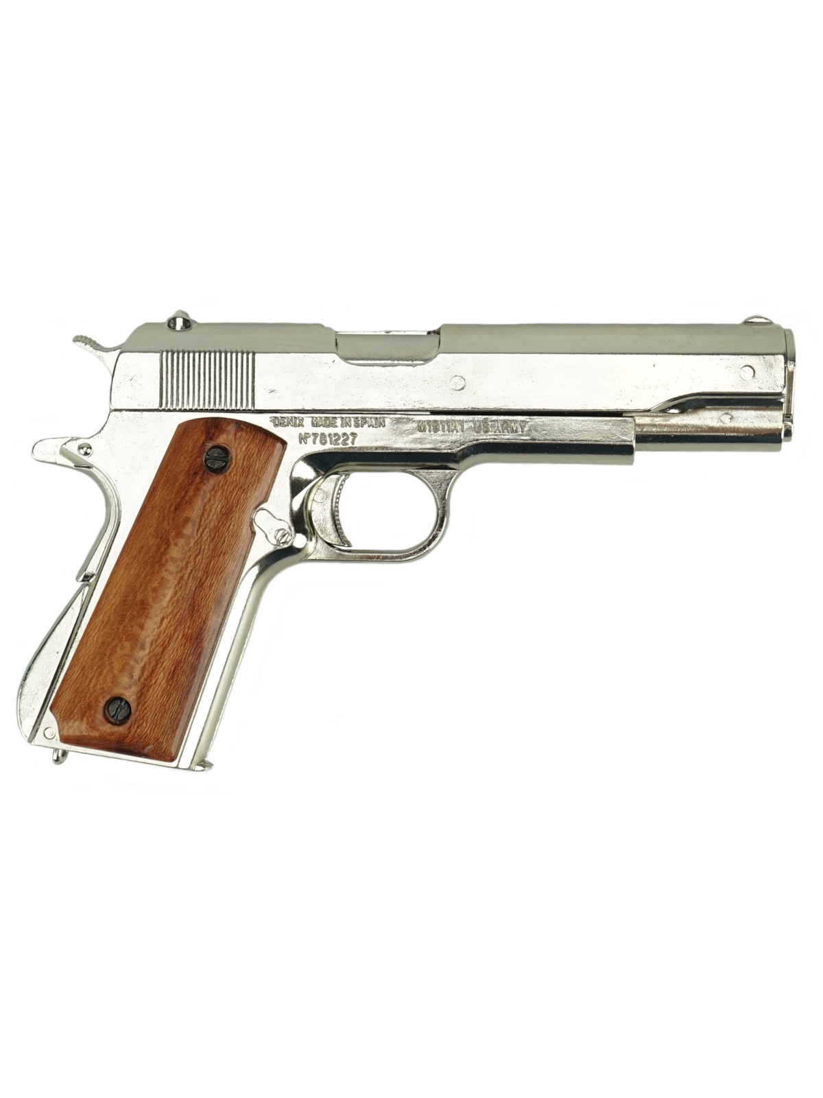 Макет пистолет Colt M1911A1, .45 калибра, хром, лакированное дерево (США, 1911 г.) DE-6316