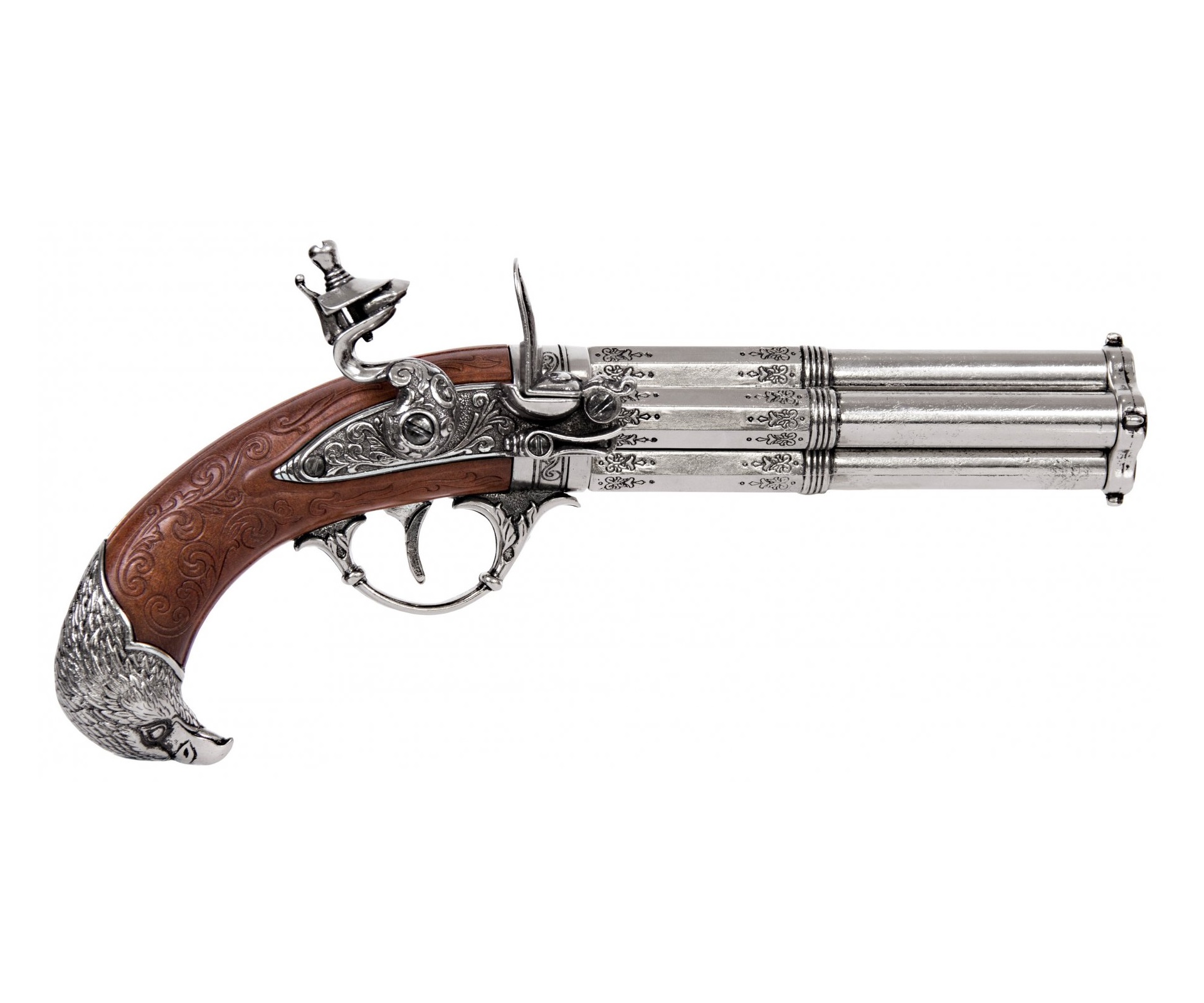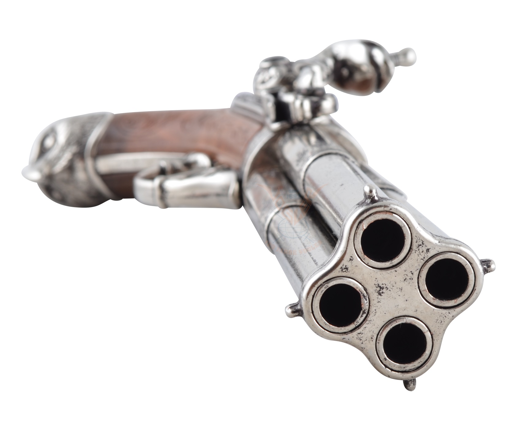 Можно назвать такую модель пистолета предшественником револьвера, так как здесь стрелок должен был вручную прокручивать стволы. Тем не менее, скорострельность и возможности такого оружия были выше, чем обычного кремниевого пистолета с одним стволом. Есть возможность имитации заряжания и процесса стрельбы. Изделие не предназначено для использования с боеприпасами, произвести выстрел из него невозможно.