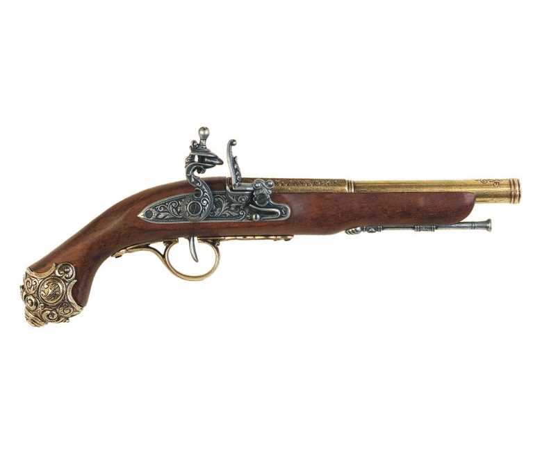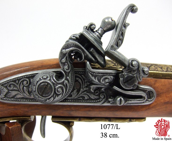 Данный кремниевый пистолет является декоративной копией оружия 18 века. Сувенирное оружие изготовлено лучшими испанскими мастерами, работающими в компании Denix, и может стать отменным украшением любого делового или домашнего интерьера.