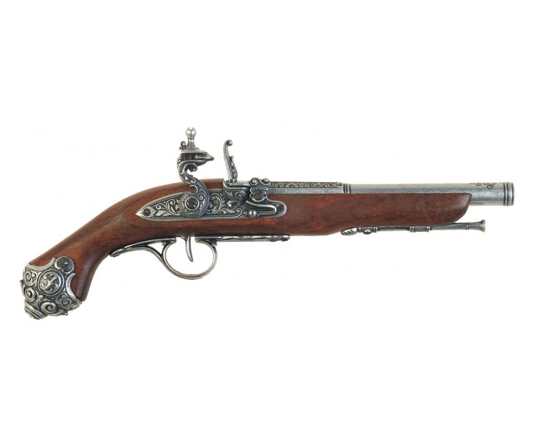 Данный кремниевый пистолет является декоративной копией оружия 18 века. Сувенирное оружие изготовлено лучшими испанскими мастерами, работающими в компании Denix, и может стать отменным украшением любого делового или домашнего интерьера.